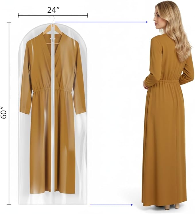 - Versatile Storage: These garment bags(24" X 60") for hanging clothes offer versatile storage solutions, accommodating Coats, Uniforms, Wedding Dress ,long Gowns . Use as a suit bag travel companion or a small dresser for closet organization.