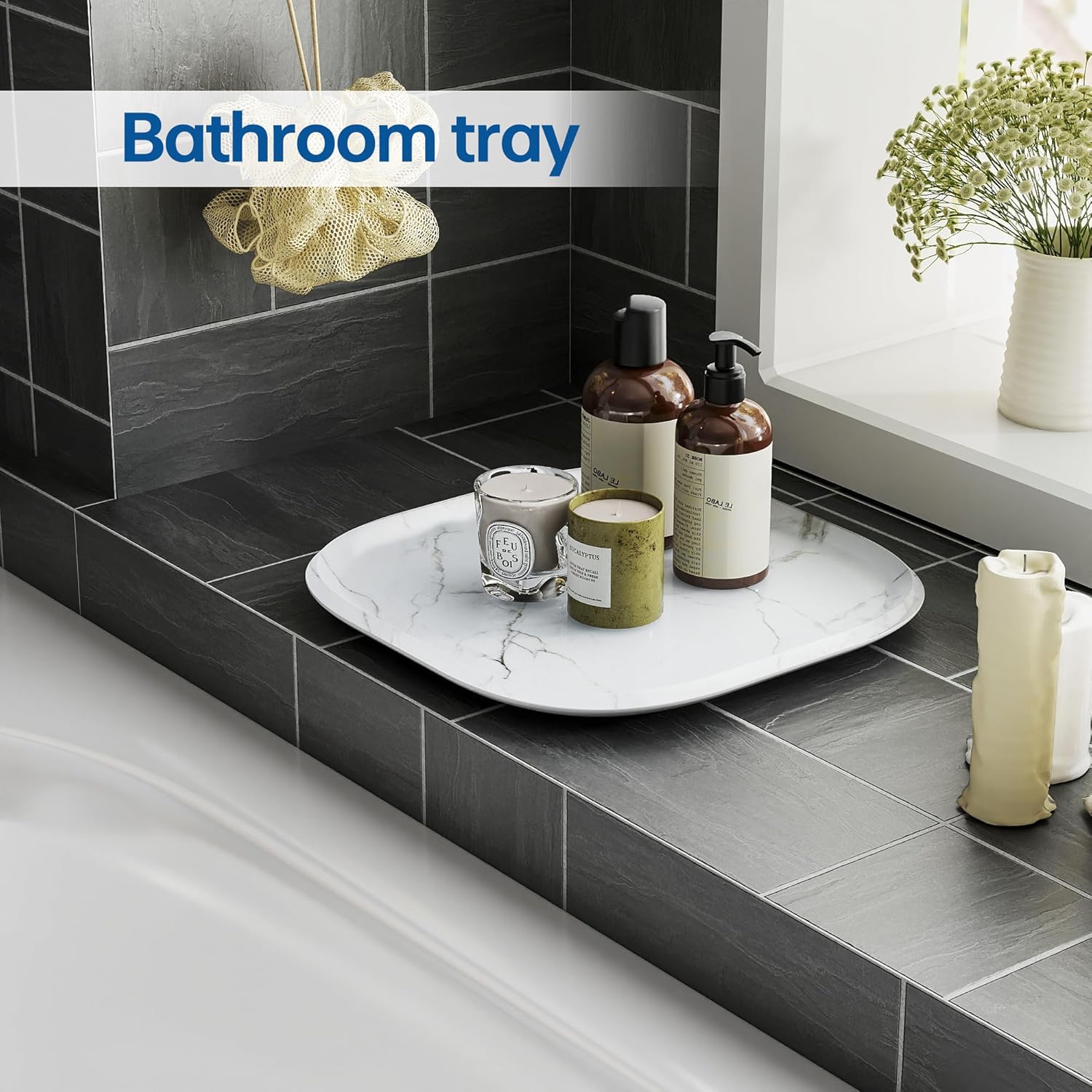 Vanity Decorative Glass Tray,12" x 12" White Marble Pattern Perfume Tray, Bathroom Tray Countertop Organizer for Soap Towel, Jewelry, Candle