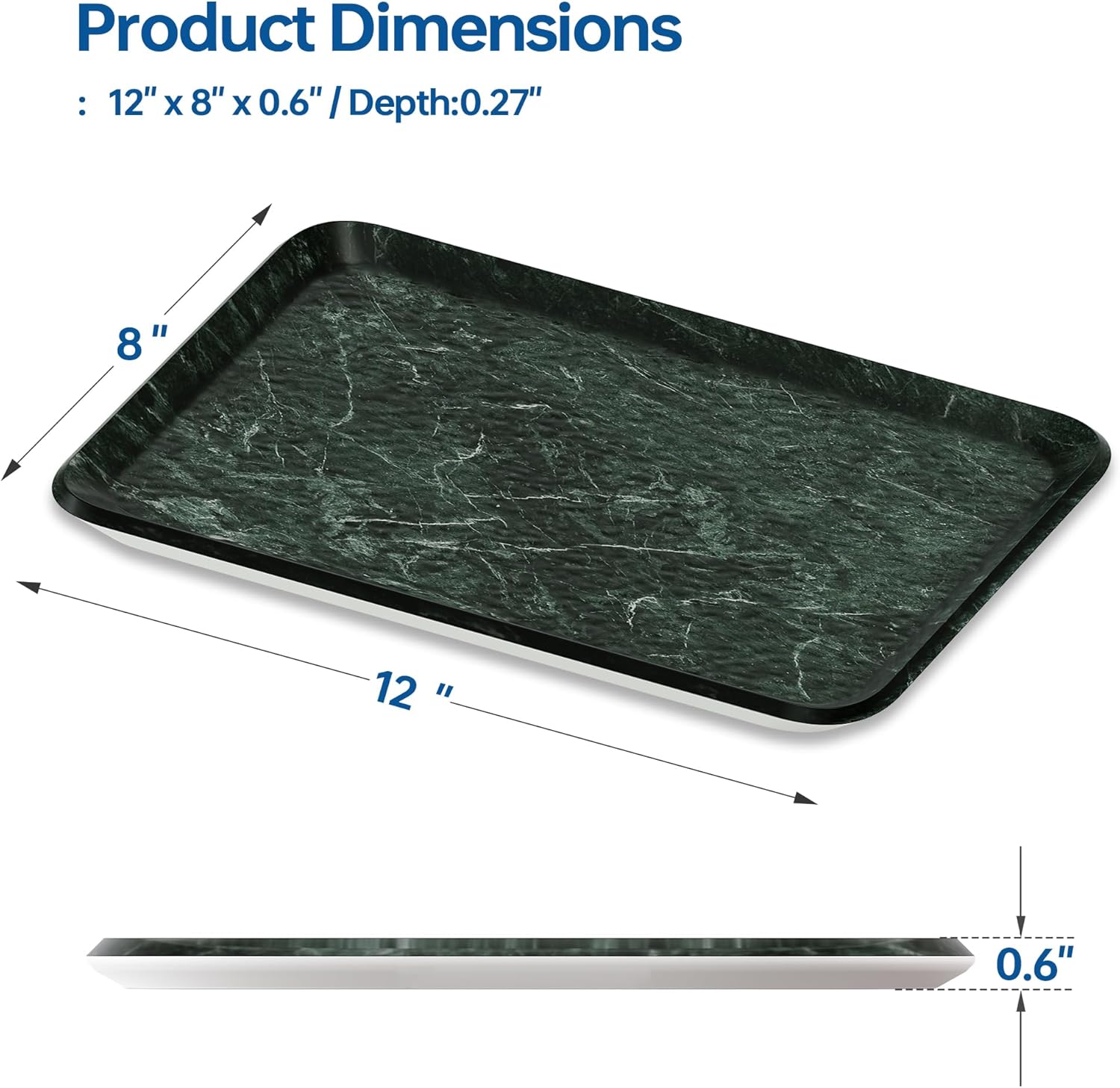 Vanity Decorative Glass Tray,12" x 8" Green Marble Pattern Perfume Tray, Bathroom Tray Countertop Organizer for Soap Towel, Jewelry, Candle