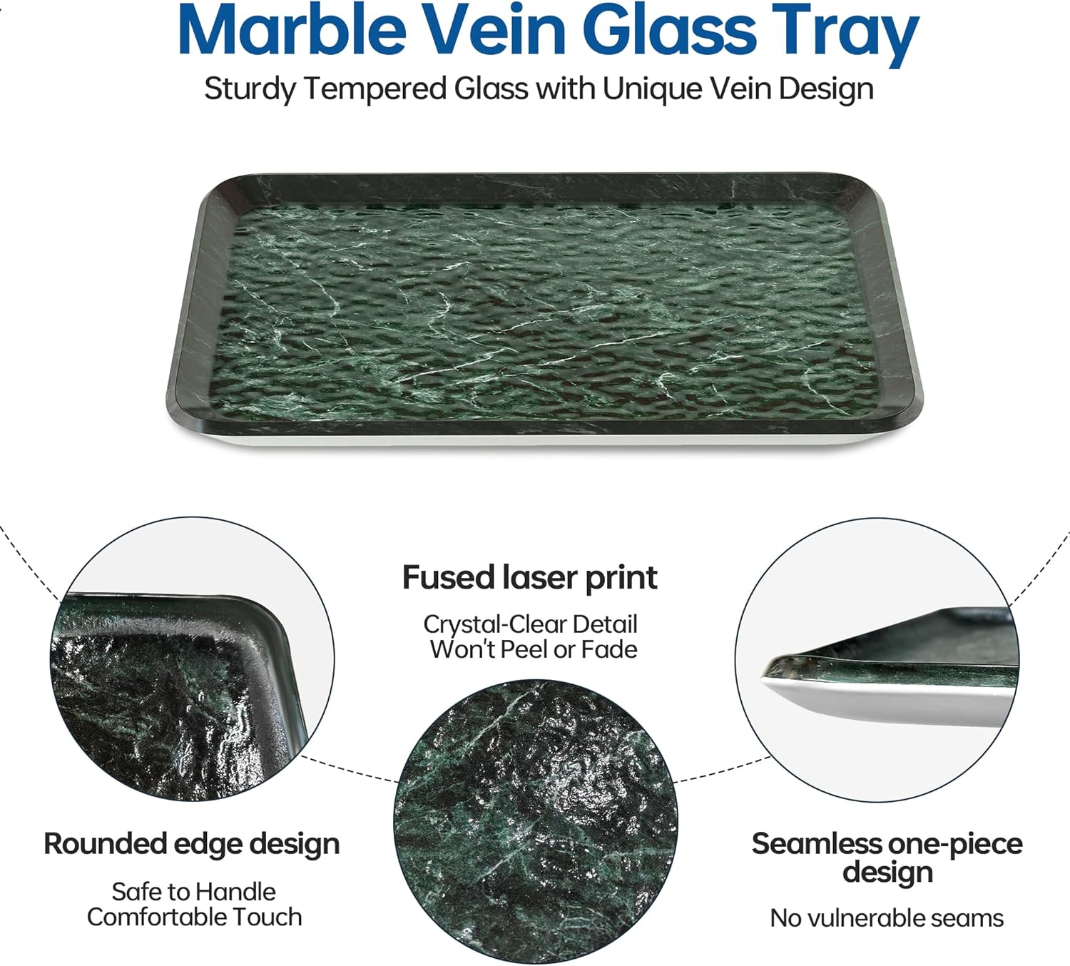 - Sophisticated Marble & Glass Design: Elevate your bathroom or vanity with this elegant tray, featuring a realistic green marble vein pattern on sleek glass for a touch of modern luxury.