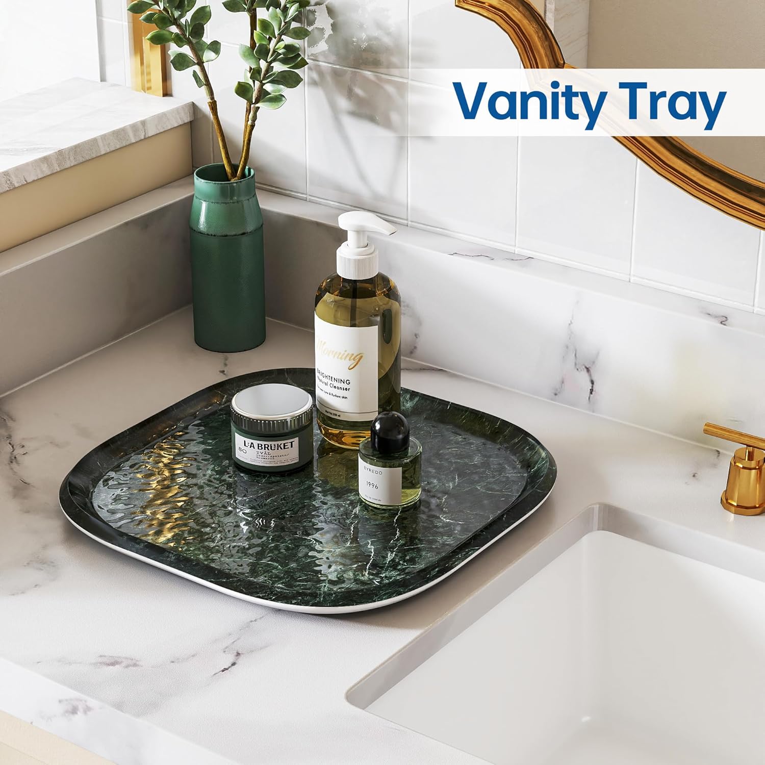 Vanity Decorative Glass Tray,12" x 12" Green Marble Pattern Perfume Tray, Bathroom Tray Countertop Organizer for Soap Towel, Jewelry, Candle