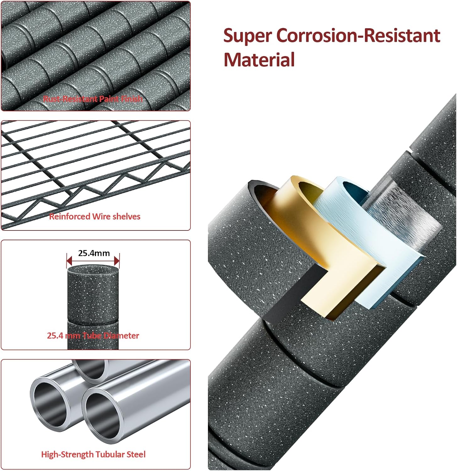 - 【Rust-Resistant & Corrosion-Proof Coating】 Crafted from premium steel with a protective powder-coated finish, the rack effectively resists rust, corrosion, and moisture—ideal for humid or outdoor environments.
