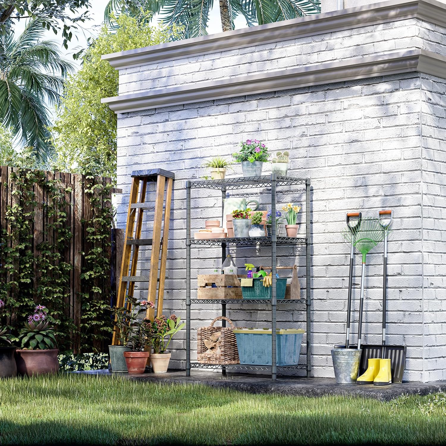 IZEUK 4-Tier Outdoor Metal Storage Shelving Unit, Heavy Duty Wire Rack Organizer with Rust-Resistant and Corrosion-Proof Coating (Grey, 17.7" D x 35.43" W x 59" H)