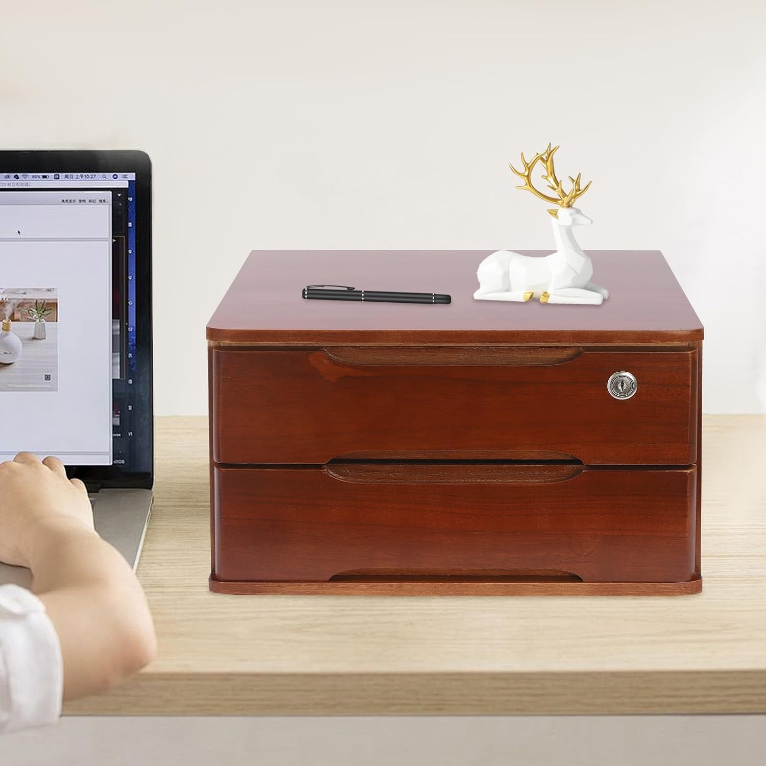 - 【Product Size】Measuring 39*30*21.5 cm/ 15.35*11.81*8.46 in, this desktop organizer features 2 drawers for categorized storage, helping you keep items neatly sorted. The top surface also provides additional space for display or storage, maximizing your workspace efficiency.