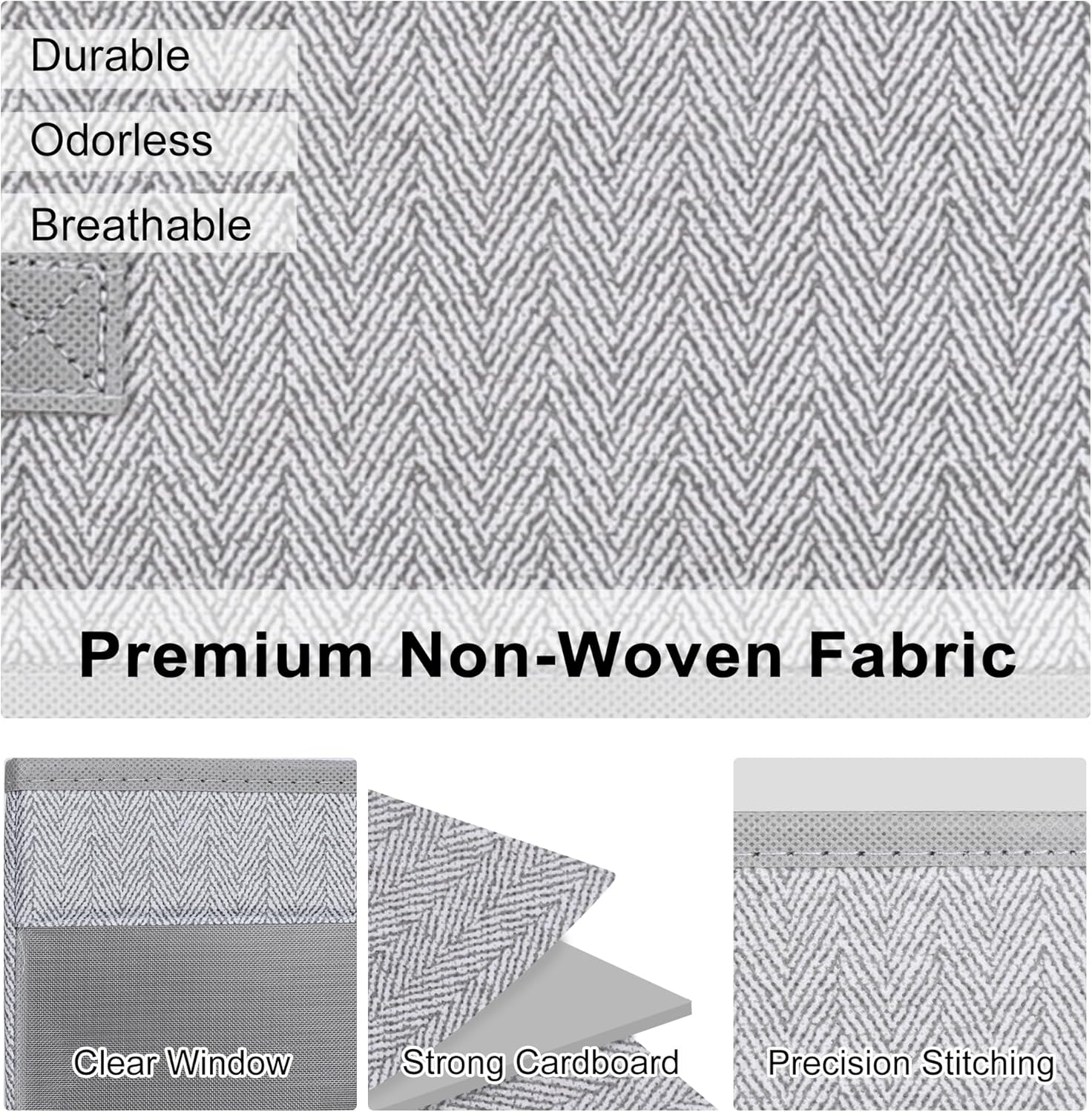 WUIKE Closet Storage Bins, Large Fabric Storage Baskets with Clear Window, Foldable Organizer for Clothes, Shelves, Herringbone Gray, 3 Pack