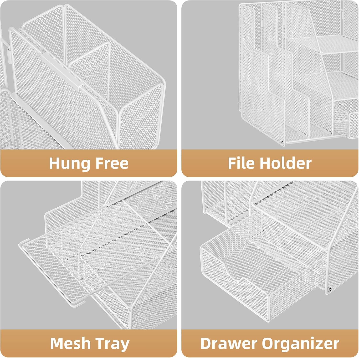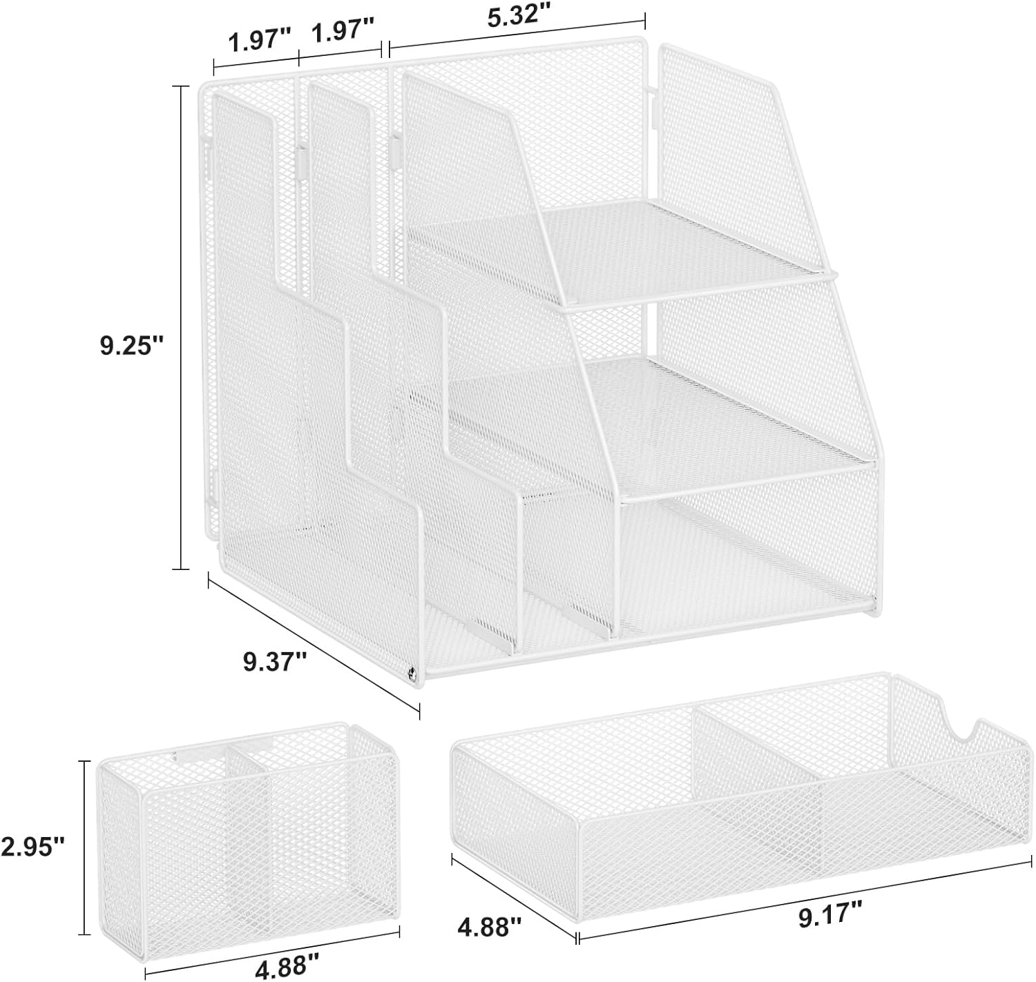 - 【Premium Material】The office supplies desk organizer is made of lightweight, durable metal mesh and reinforced with a solid steel frame that makes it have long-lasting strength and reliable performance