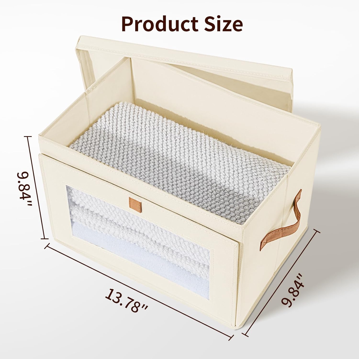 DIMJ Storage Bins with Lids - 4 Pack Large Fabric Closet Organizer with Window & Handles, Collapsible Decorative Storage Boxes for Shelves Under Bed, Books Clothes Blankets Sweaters Organization