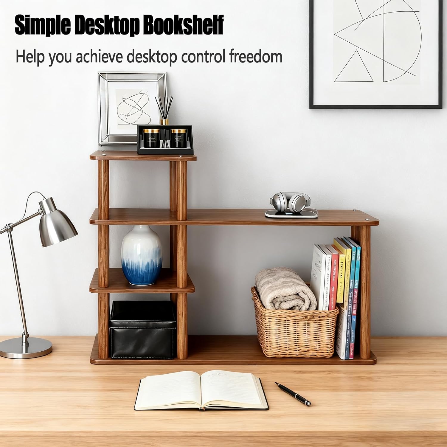 Wood Office Desk Top Shelf Organizer, 3 Tier Desktop Bookshelf with Storage for Small Spaces, Bookcase Tabletop Shelves for Office, Home, Dorm