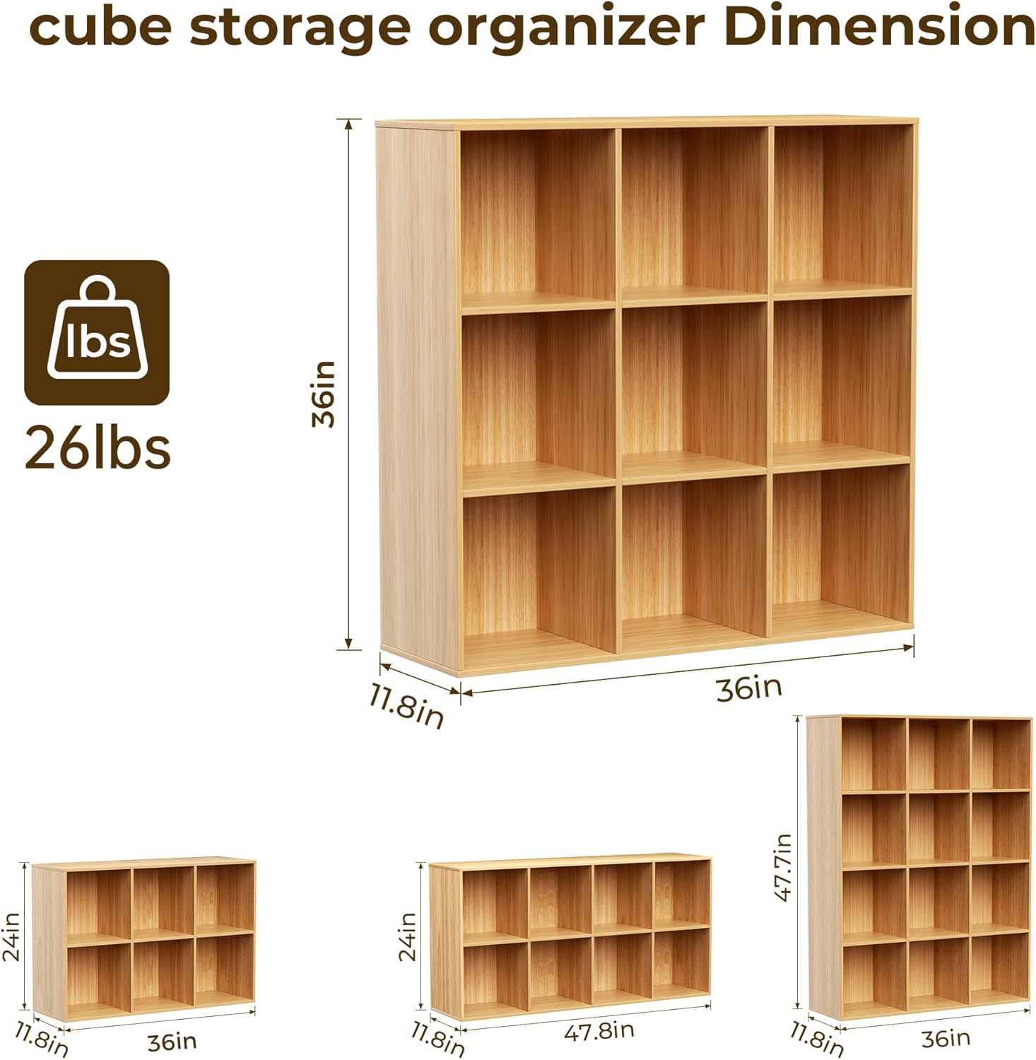Cube Storage Organizer with Back Panel, 11" x 11" Cubby Shelf, Bookshelf for Home Office, Living Room, Bedroom (Natural, 9-Cube)