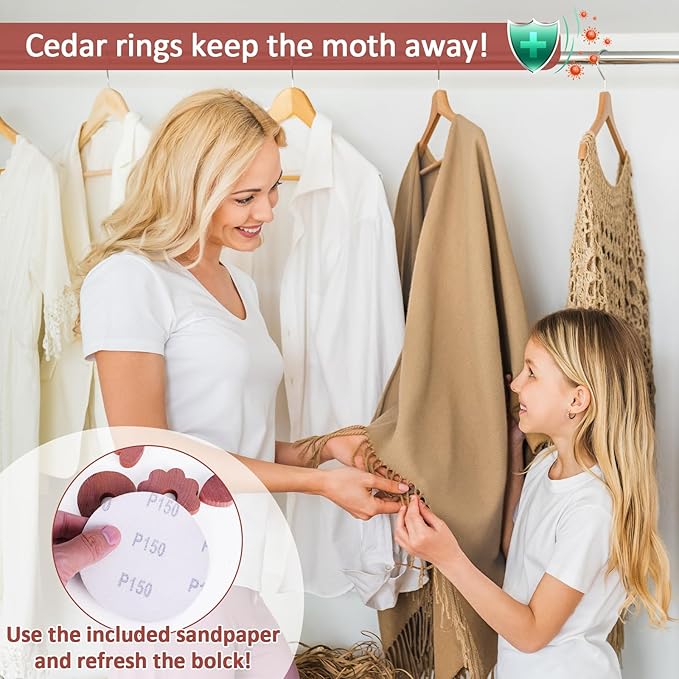 - Protect Your Closet Naturally: Made from 100% aromatic red cedar wood, cedar rings provide a natural solution for protecting valuable clothing from harmful chemicals and are ideal for closet liners, keeping clothes fresh and protecting delicate fabrics such as cashmere and wool.