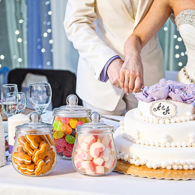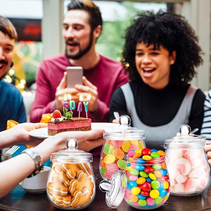 - Package Content: this pack includes 4 clear jars with lids; Each candy storage jar comes with a lid, making it ideal for those who frequently bake or entertain; The pack efficiently accommodates assorted goodies, enough quantity to meet your various requirements; Note: this product is made of plastic; Please confirm the material before purchasing