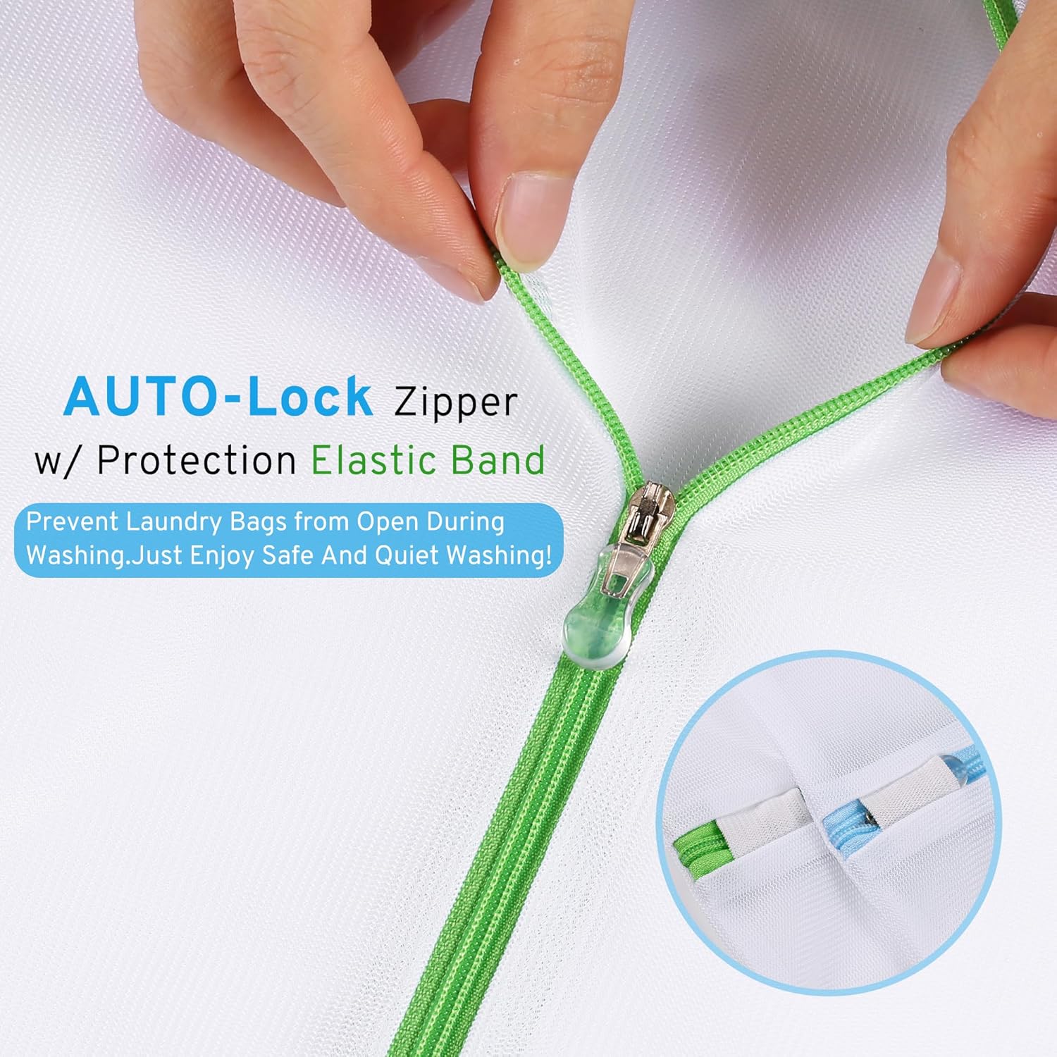 - Superior Zipper : Our laundry wash bags feature a premium zipper with AUTO-Lock and an extra protective elastic band, ensuring the contents remain securely enclosed throughout the washing and drying cycle. You’ll have a quiet laundry experience
