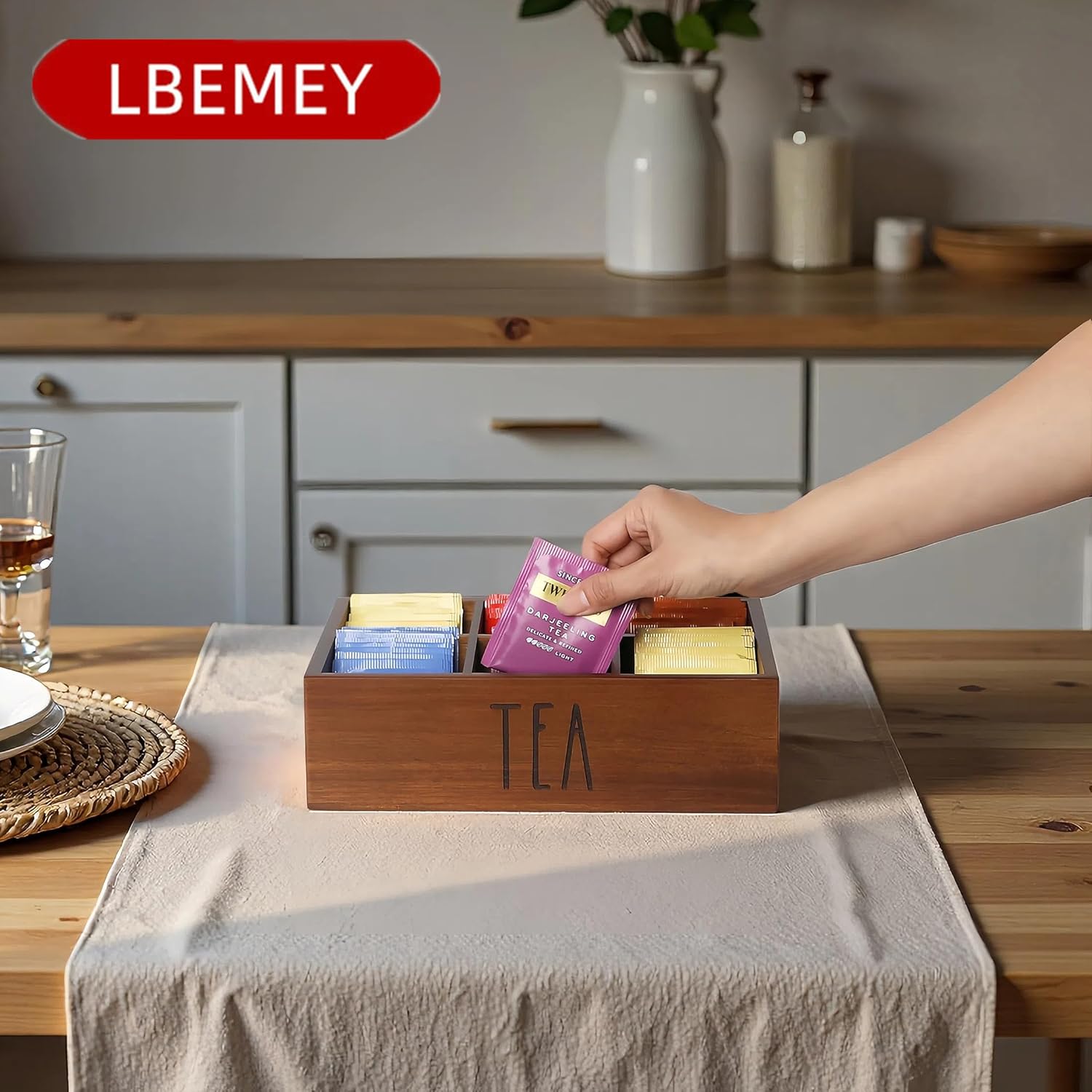 - MULTI COMPARTMENTS TEA CADDY:Size: 10" L x 6" W x 3" H.The Tea Bag organizer with 6 compartments help with organizing various flavors for easy access which provide enough spaces to store, organize and separate tea bags.