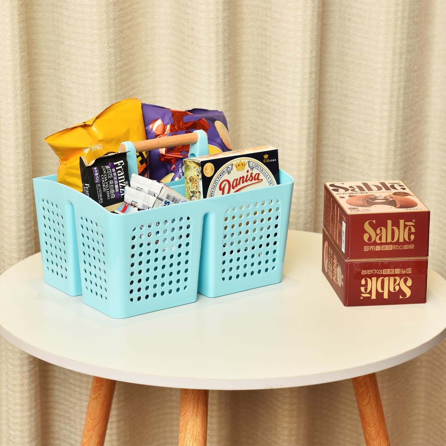 Portable Shower Caddy Basket with Compartments, Plastic Divided Cleaning Caddy Organizer Storage Tote with Handle for Bathroom, College, Dorm Room Essentials, Light Blue