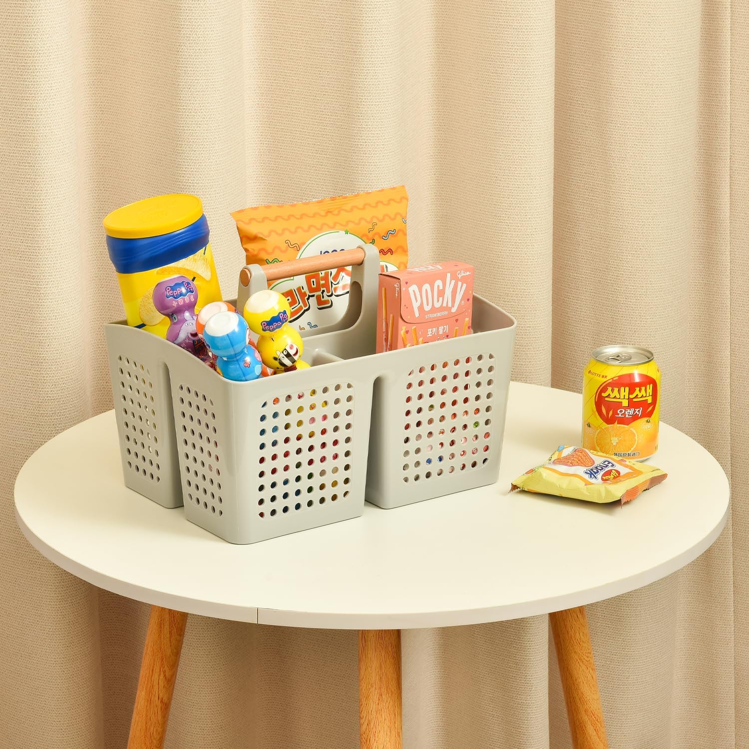 Portable Shower Caddy Basket with Compartments, Plastic Divided Cleaning Caddy Organizer Storage Tote with Handle for Bathroom, College, Dorm Room Essentials, Light Gray