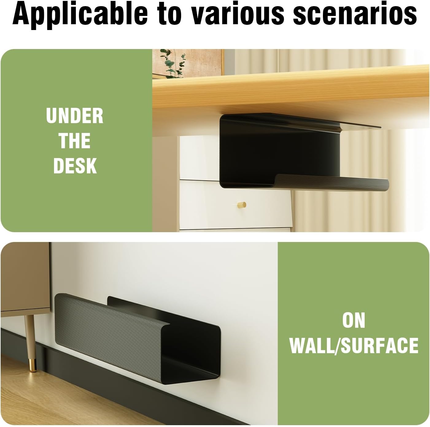 2 Pack No-Screw Cable Management Under Desk, Self-Adhesive Cord Organizer, Wire Management Tray for Office and Home (Black)