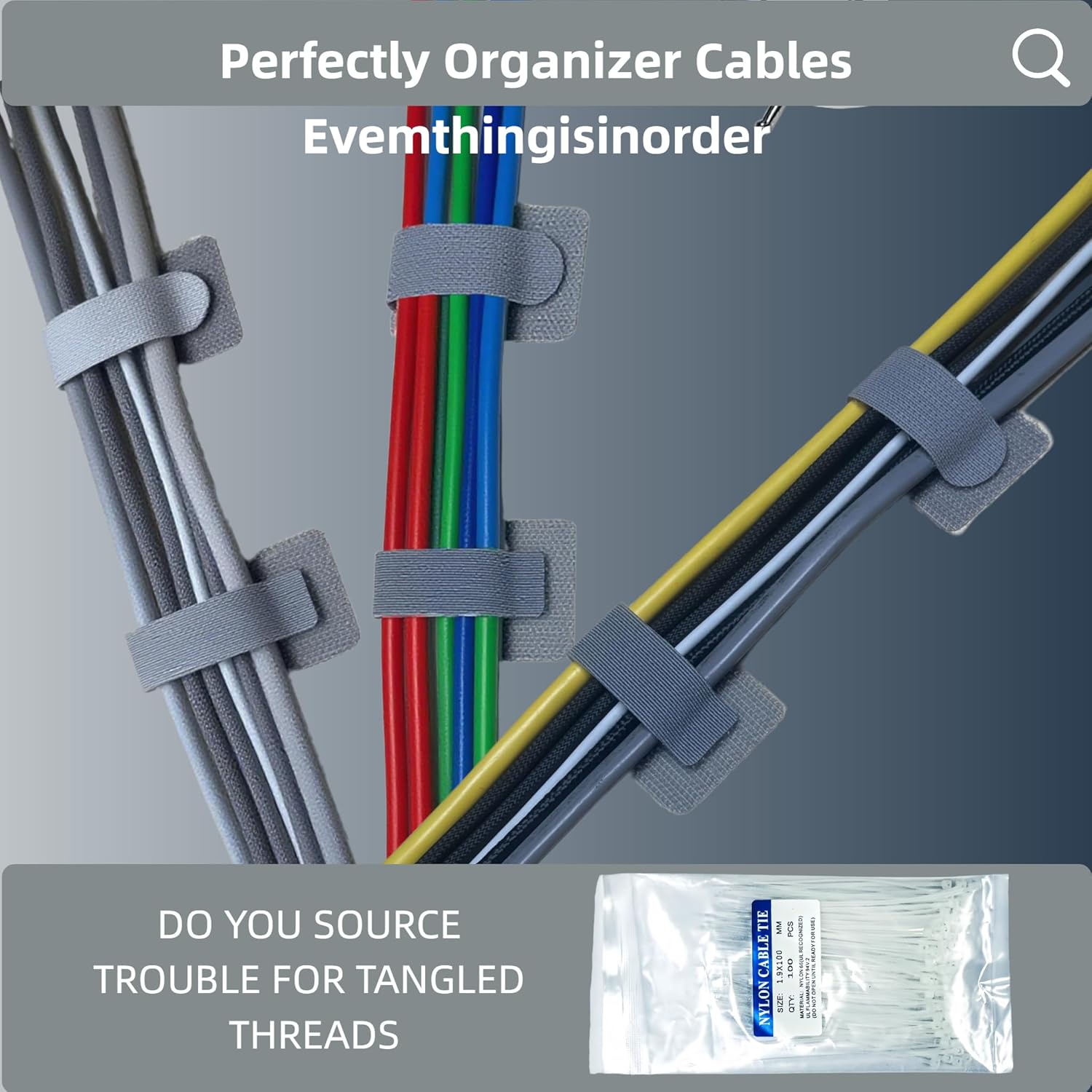 - VERSATILE DESIGN: The set includes 40 reusable hook-and-loop cable ties and 100 pcs nylon cable ties, ideal for organizing various types of cables and wires