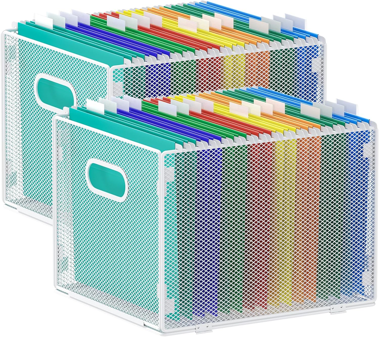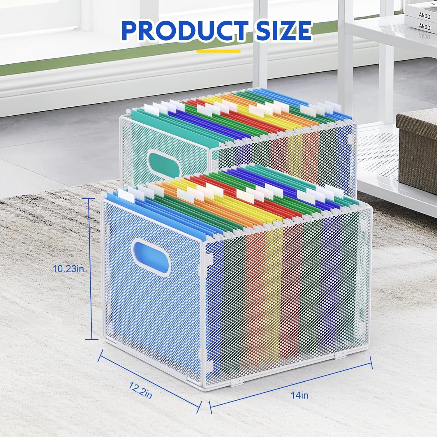 samstar 2 Pack Hanging File Organizer, Mesh File Folder Box Filing Box Cabinet Organizer Storage Boxes, Letter Size,White
