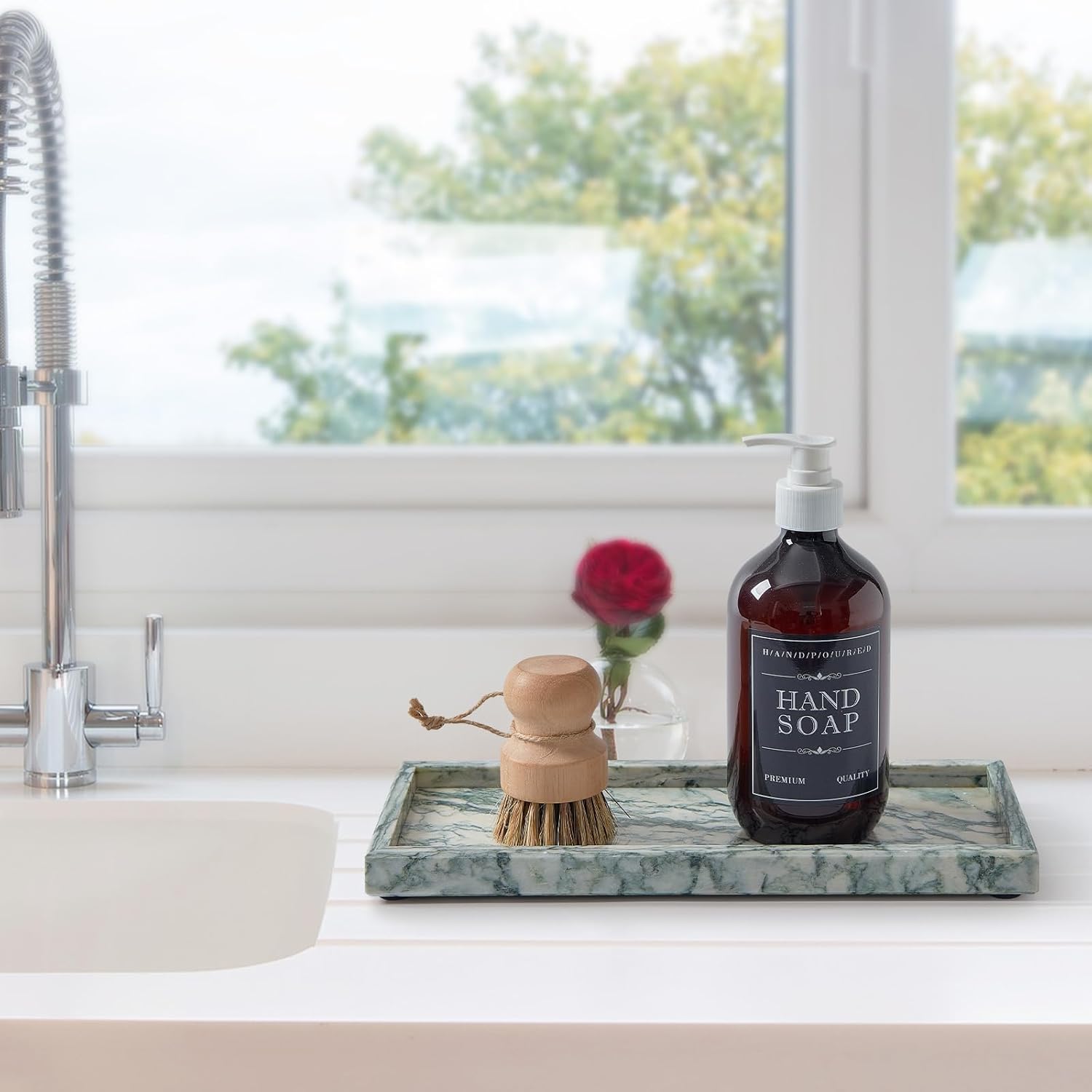 Luxury Natural Small Marble Tray for Bathroom Vanity and Kitchen Sink, Stone Countertop Organizer for Soap Dispenser, Jewelry, Perfume, Candle, Ring, Home Decor, Non-Resin Non-Ceramic