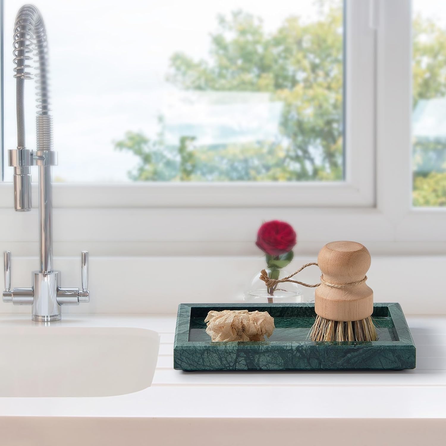Natural Small Marble Vanity Tray, Luxury Stone Organizer for Bathroom & Kitchen | Holds Soap Dispenser, Jewelry, Perfume | Non-Resin, Non-Ceramic Décor