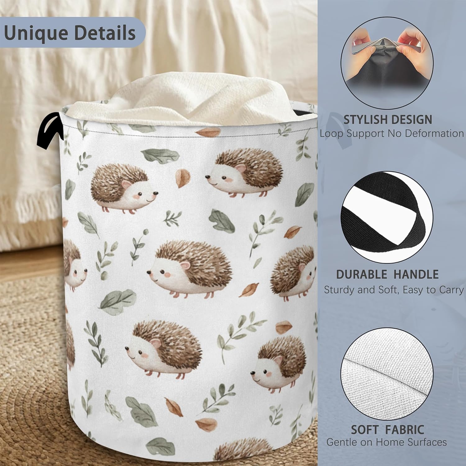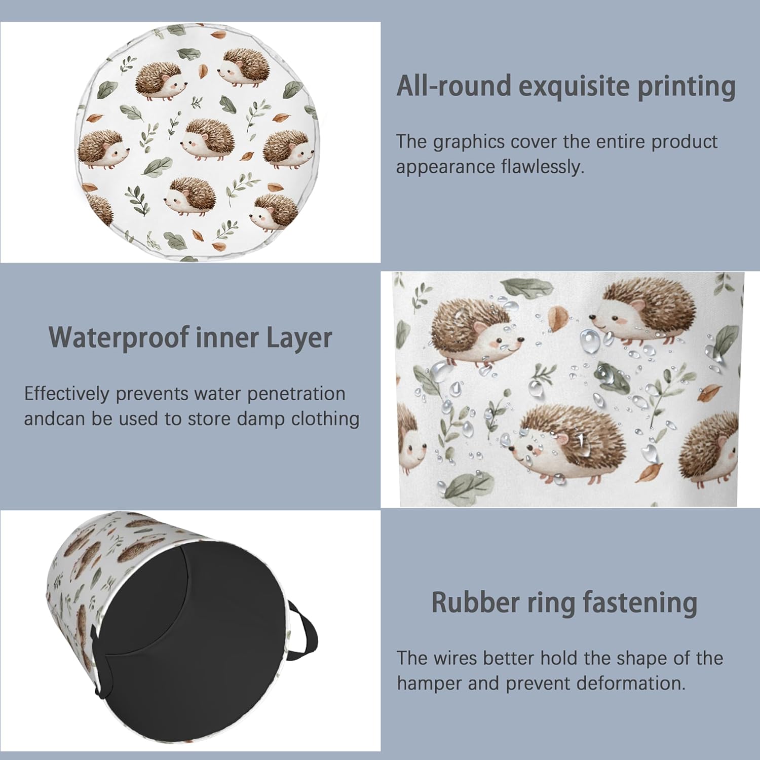 Hedgehog Laundry Hamper,Plant Leaf Dirty Clothes Laundry Basket with Handles Waterproof Oxford Cloth Storage Basket for College Dorms Bathroom Bedroom 16" x 20.8"