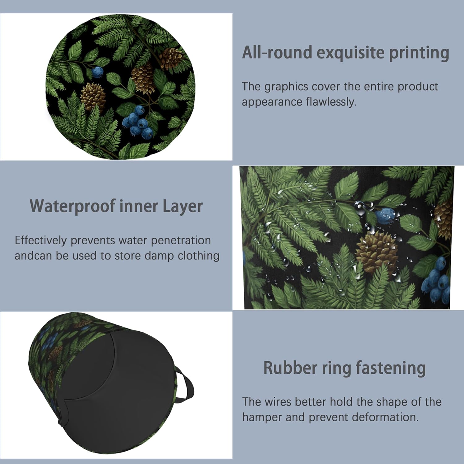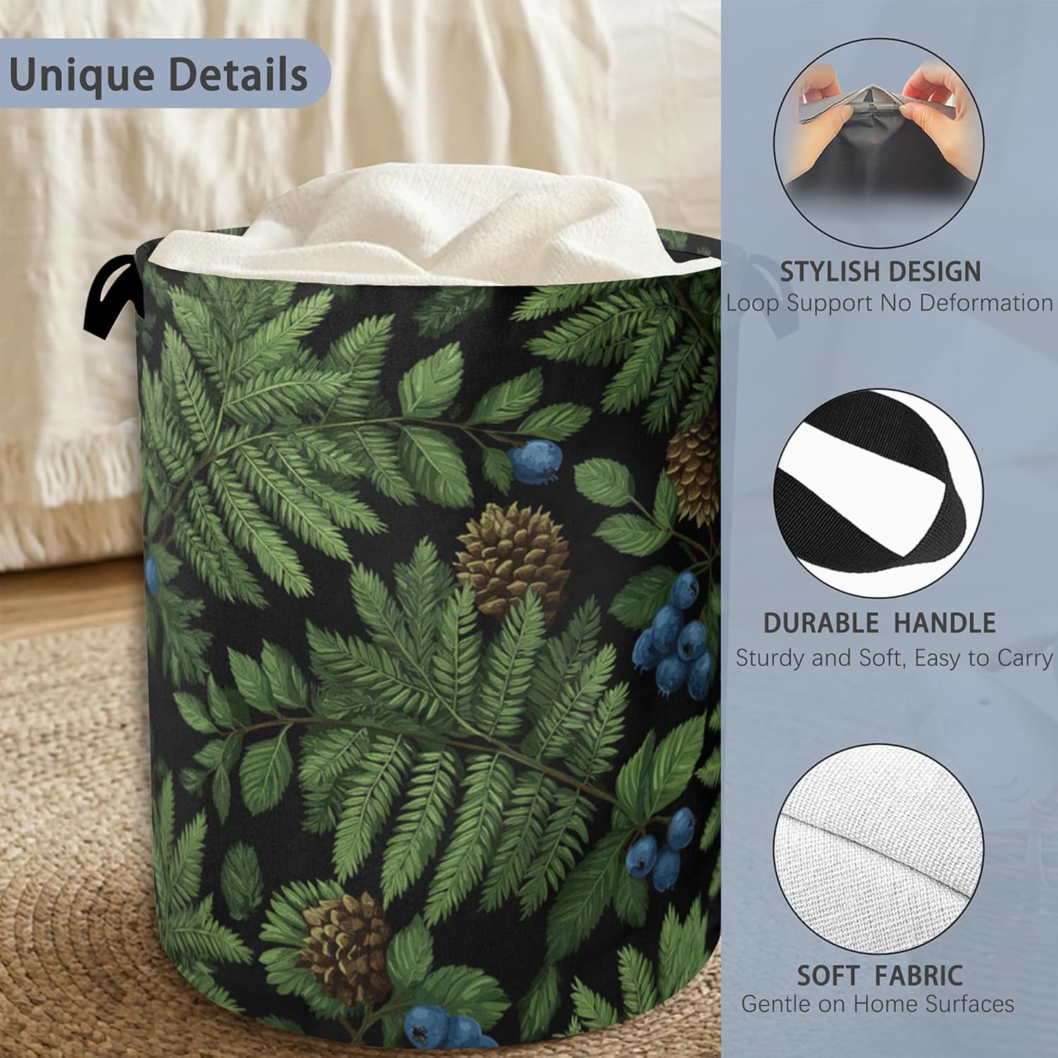 - Unique Design:This Ferns Blueberry Nuts laundry basket adopts a foldable design.When not in use,it can be folded and stored to save space.There are handles on both sides for easy grip,making it easy to pick up and move.