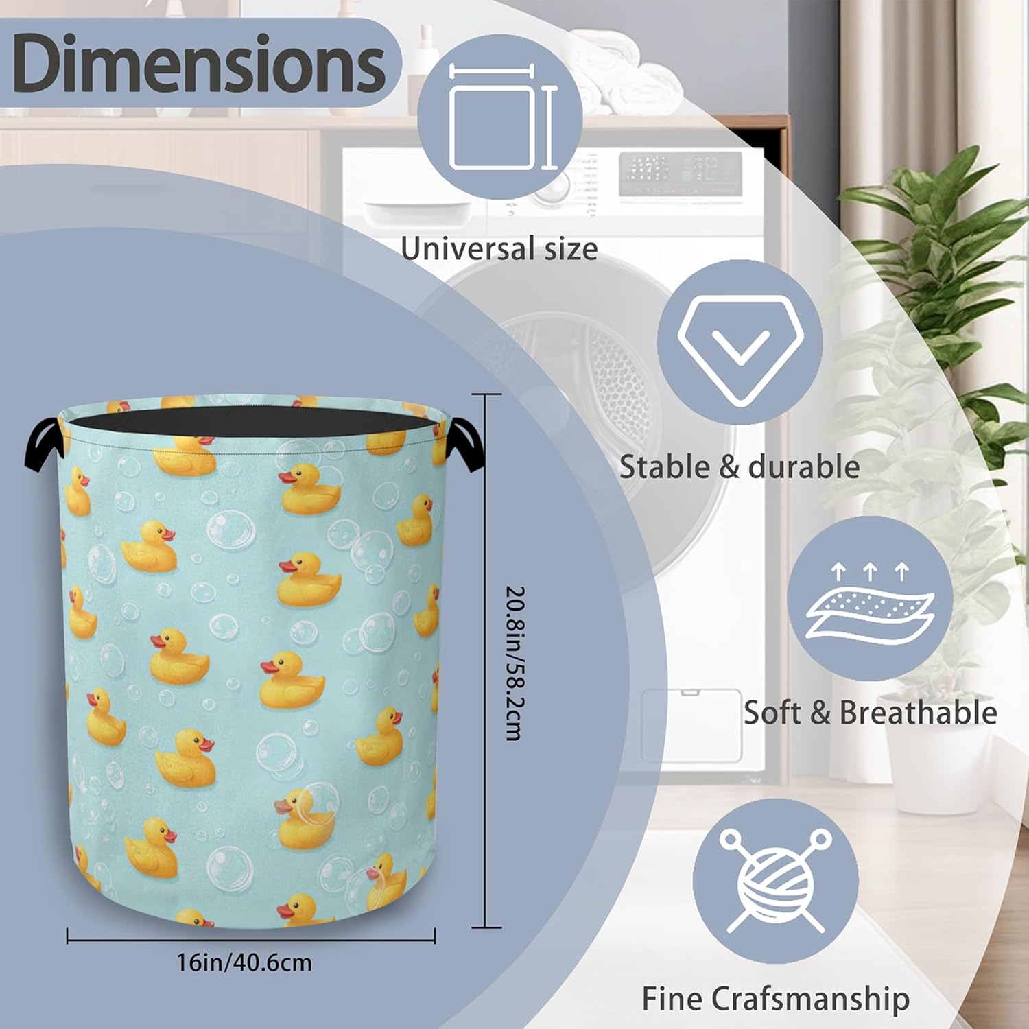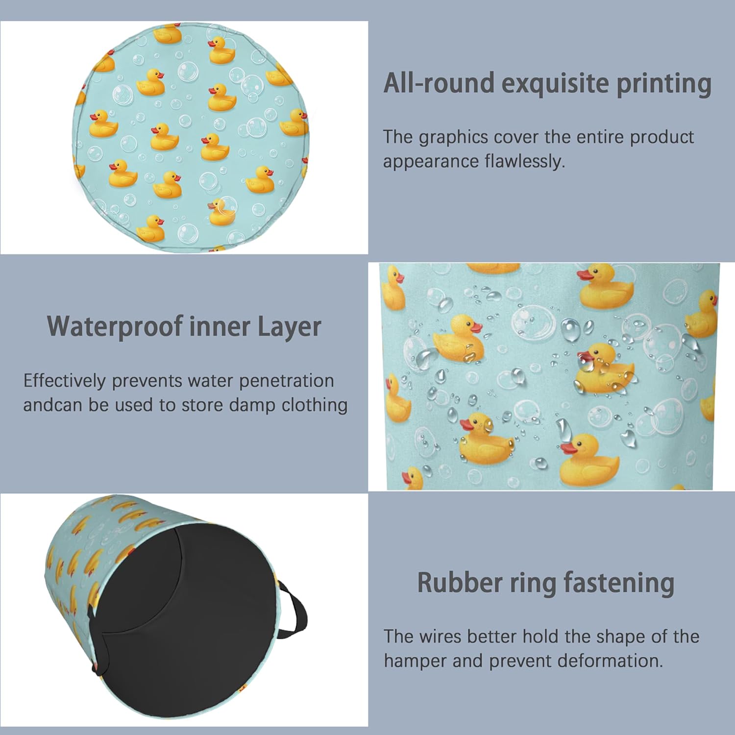 Cute Duck Laundry Basket,Foldable with Handles Tote Bag Oxford Cloth for Bathroom Bedroom Dirty Clothes Storage Bucket 16" x 20.8"