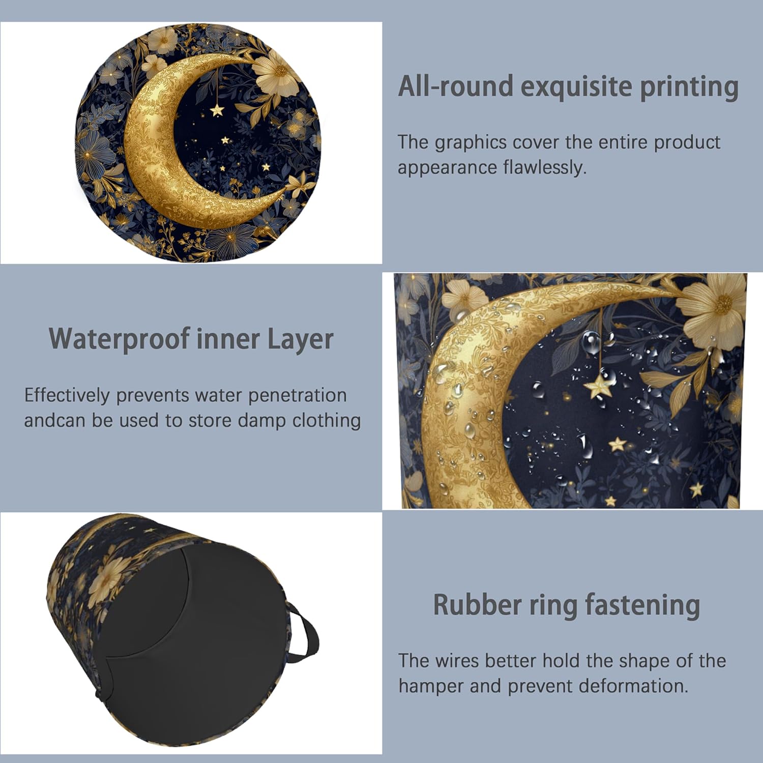 Golden Moon Laundry Basket,Flowers Foldable Oxford Cloth Tote Bag Laundry Hamper Clothes Storage Bucket Organizer for Bedroom Laundry Storage Dormitories 16" x 20.8"