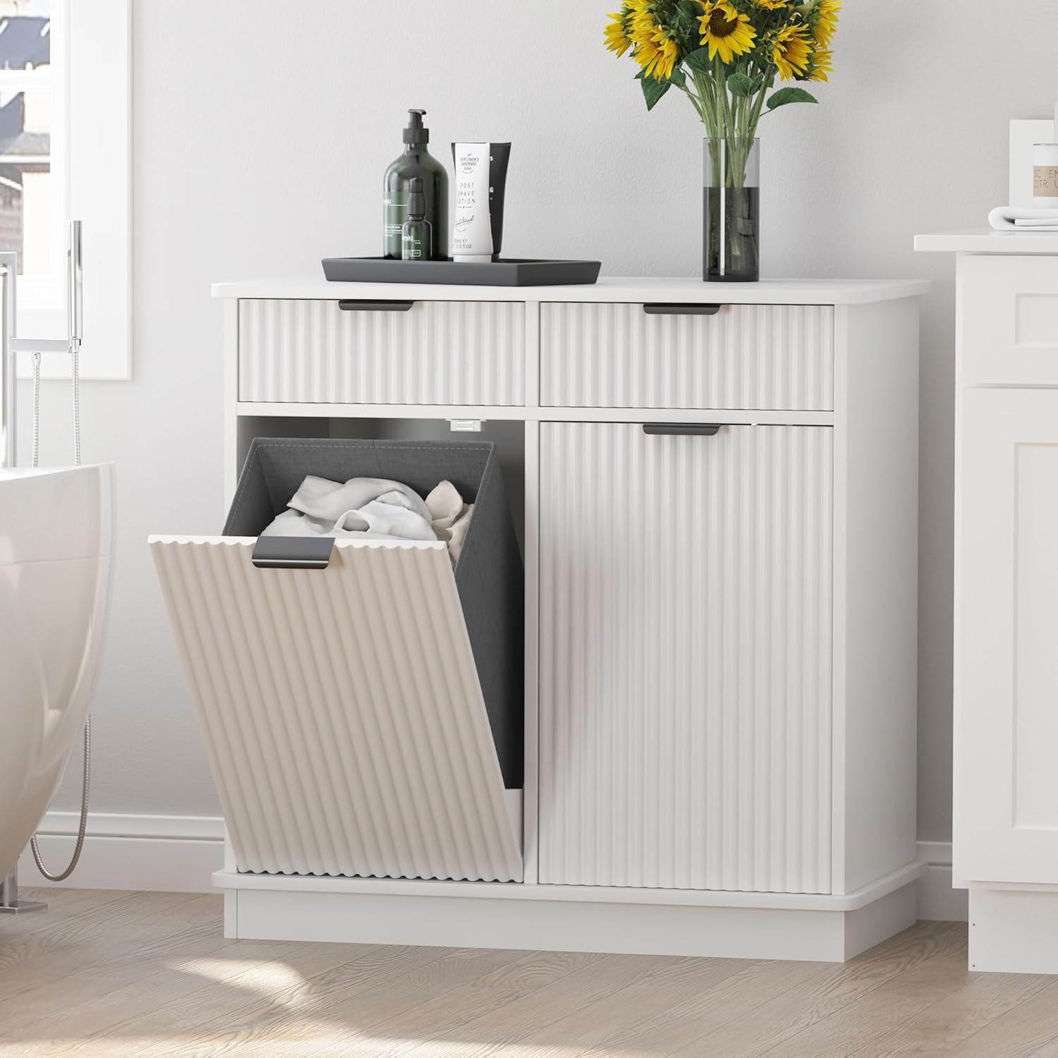 - Clean And Tidy, Wide Use: The double tilt out laundry cabinet can separate dirty clothes from clean ones, preventing unpleasant odors from spreading and keeping the room clean and tidy.It can be used in various occasions such as bathrooms, bedrooms, laundry rooms, kitchens, etc. The dirty laundry bag can be taken out at will and are very convenient to use.