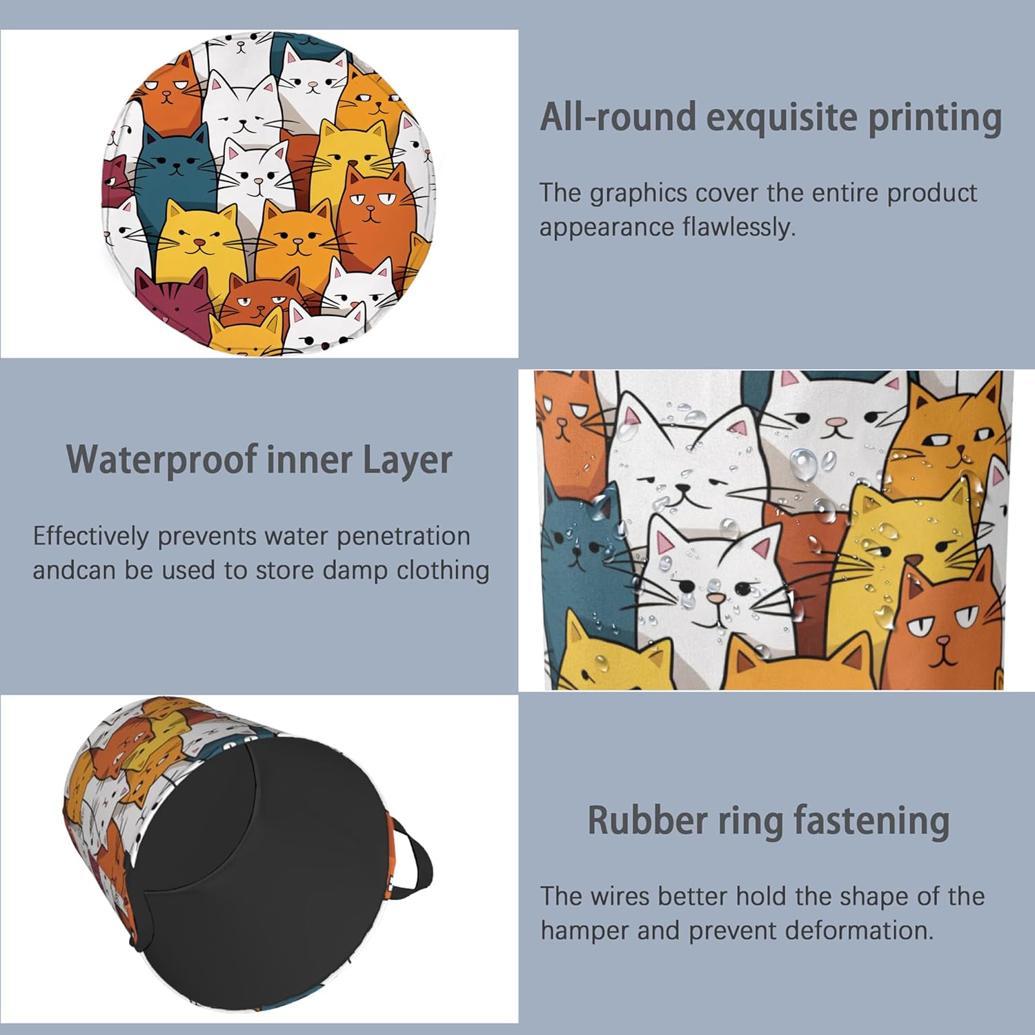 Funny Cat Laundry Basket,Foldable Oxford Cloth Tote Bag Laundry Hamper Clothes Storage Bucket Organizer for Bedroom Laundry Storage Dormitories 16" x 20.8"