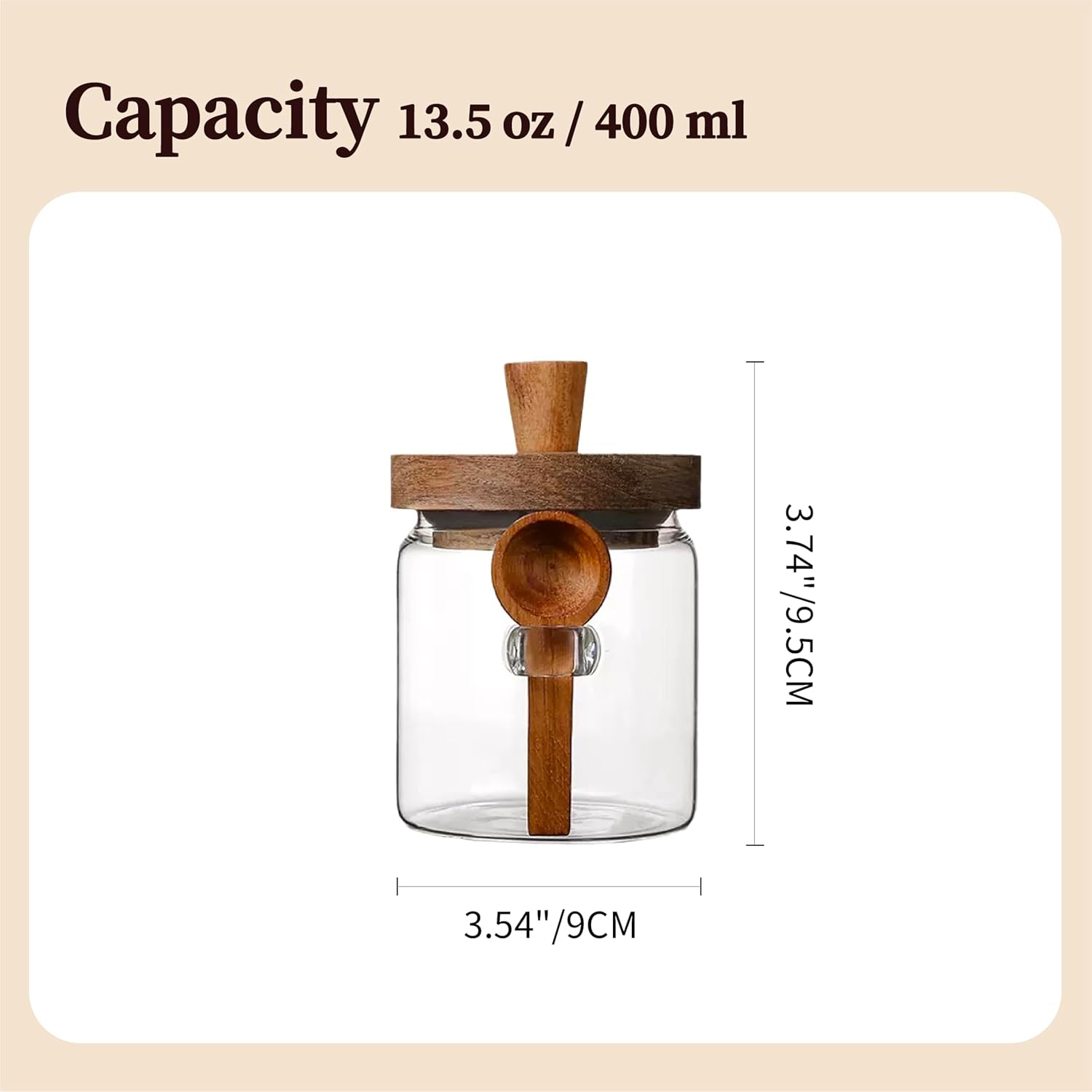 - EASY CARE & MAINTENANCE: Glass container is dishwasher safe for effortless cleaning, while the wooden lid and wooden spoon should be hand washed with mild soap and water to preserve their natural beauty. Dry wooden components thoroughly before reassembling to maintain longevity.