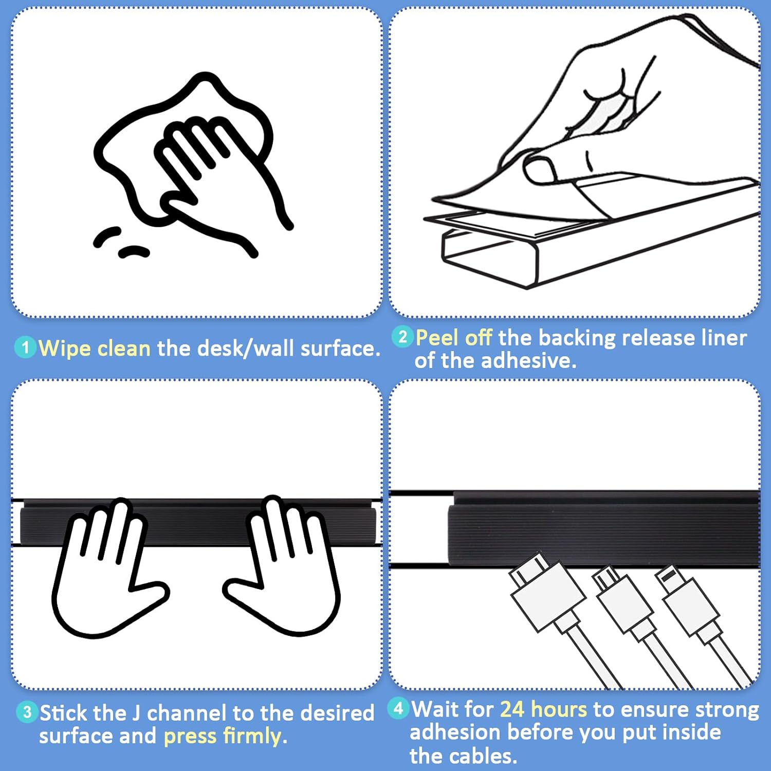 - Convenient Installation: According to the space under the desk, remove the backing and fix the cable tube in a suitable position to complete the installation quickly. The J-shaped opening is designed reasonably, making it convenient to put in or take out wires at any time.