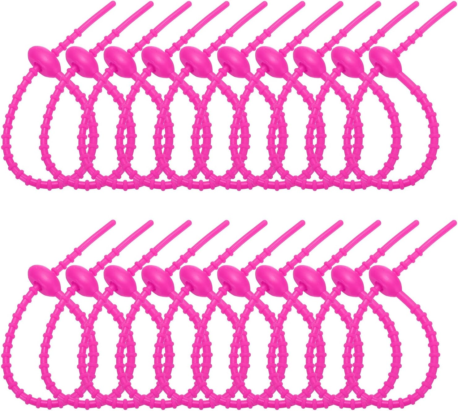PATIKIL 8 Inch Silicone Cable Ties, 20pcs Rubber Reusable Twist Zip Ties Organizer for Home Office Kitchen Food bags Wires Adjustable Bag Clip, Rose Red