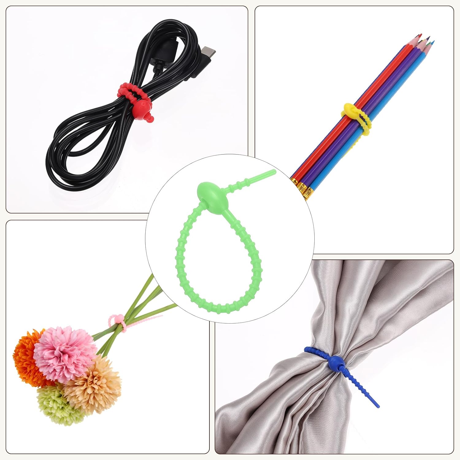 - Application: Silicone cable ties are suitable for sealing snack bags, organizing desks, drawers, tool boxes, trash bags, DIY keychain, bag charm, cord wrapping, kitchen storage, travel accessories, or any other indoor or outdoor use, which easily organize messy headphone cables, data cables, and other items.
