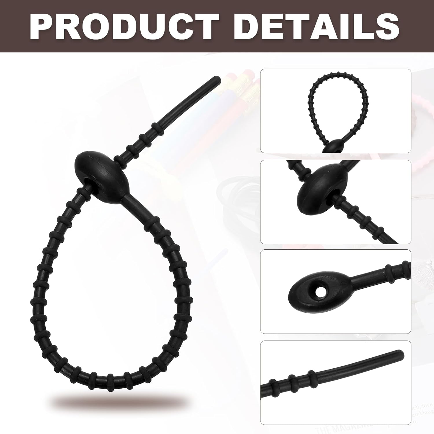 - Instruction: The hole-type silicone cable tie can be hung on a hook, or multiple cable ties can be connected together to form a longer cable tie to meet various daily needs.