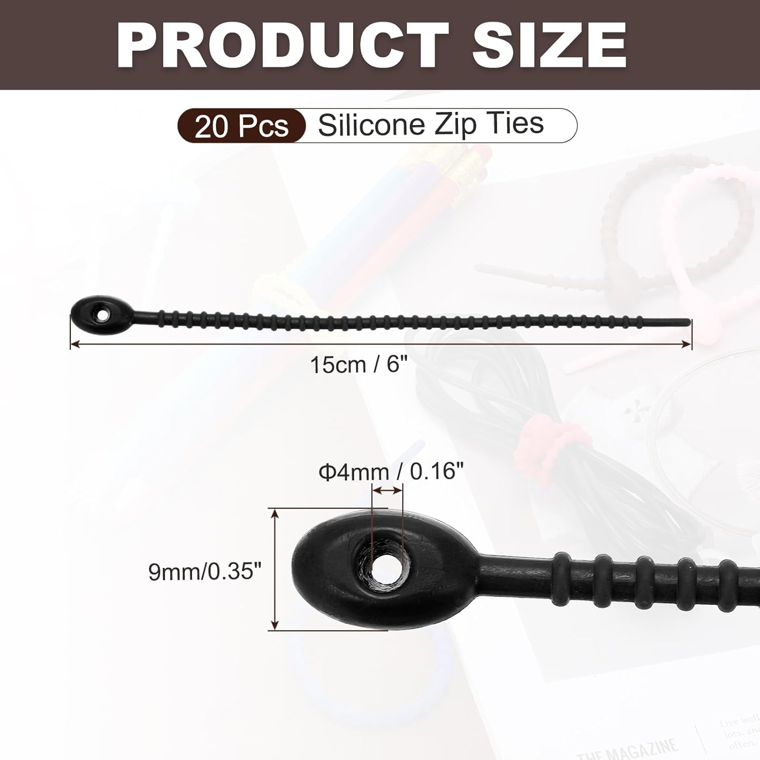- Color: Black, Material: Silicone, Length: 15 cm / 6 inch, Width: 9 mm / 0.35 inch, Wire Diameter: 4 mm / 0.16 inch, Packing List: 20 Pcs x Silicone Zip Ties