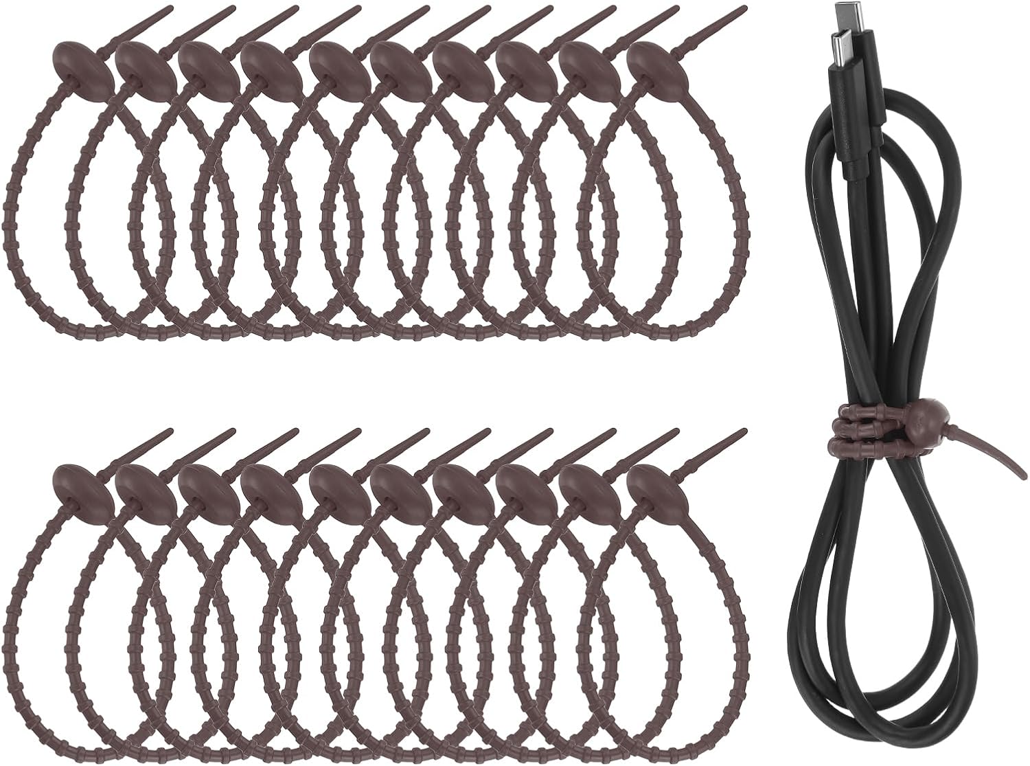 uxcell 20 Pcs Silicone Ties Bag Clip, 8.5 Inch Multi Purpose Silicone Zip Ties Reusable Rubber Zip Tie, Cable Strap Cord Organizer for Home Office Food Bag Wires Cables, Dark Brown