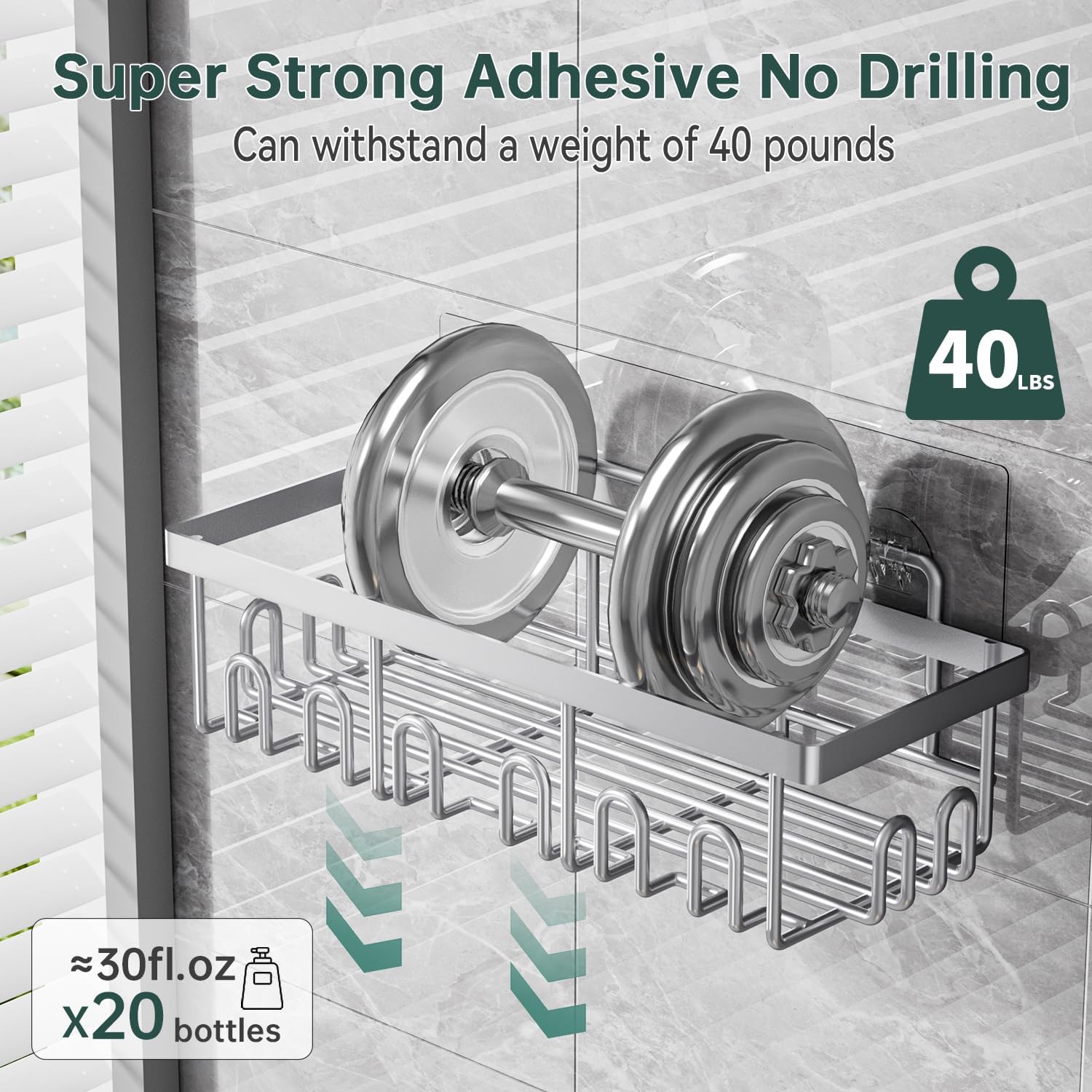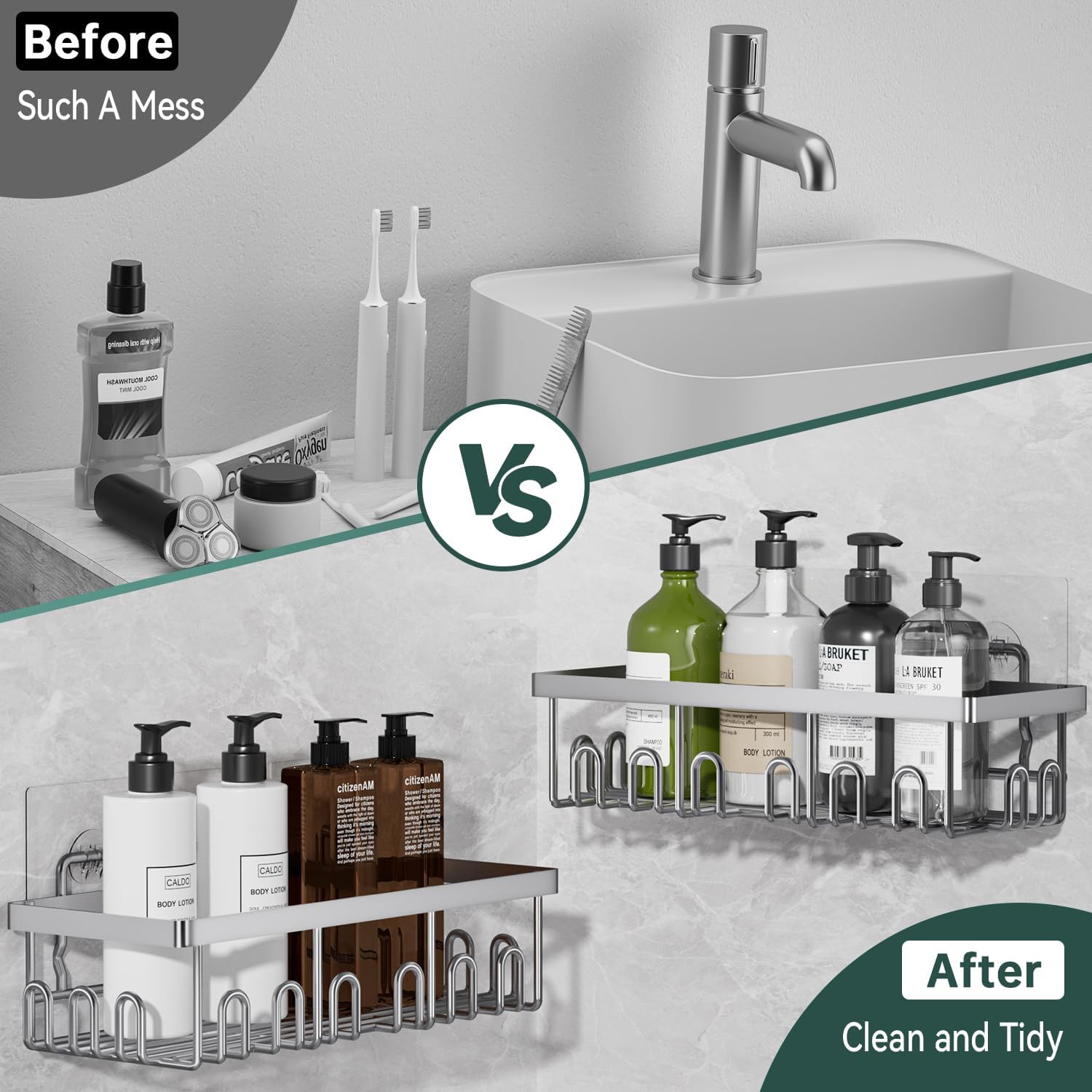- Anti-Rust & Durable Material Crafted from premium stainless steel with a rust-resistant coating, these shower shelves are waterproof, rustproof, and highly durable. The open-grid bottom design allows water to drain quickly, keeping items dry and ensuring long-term use even in humid bathroom environments