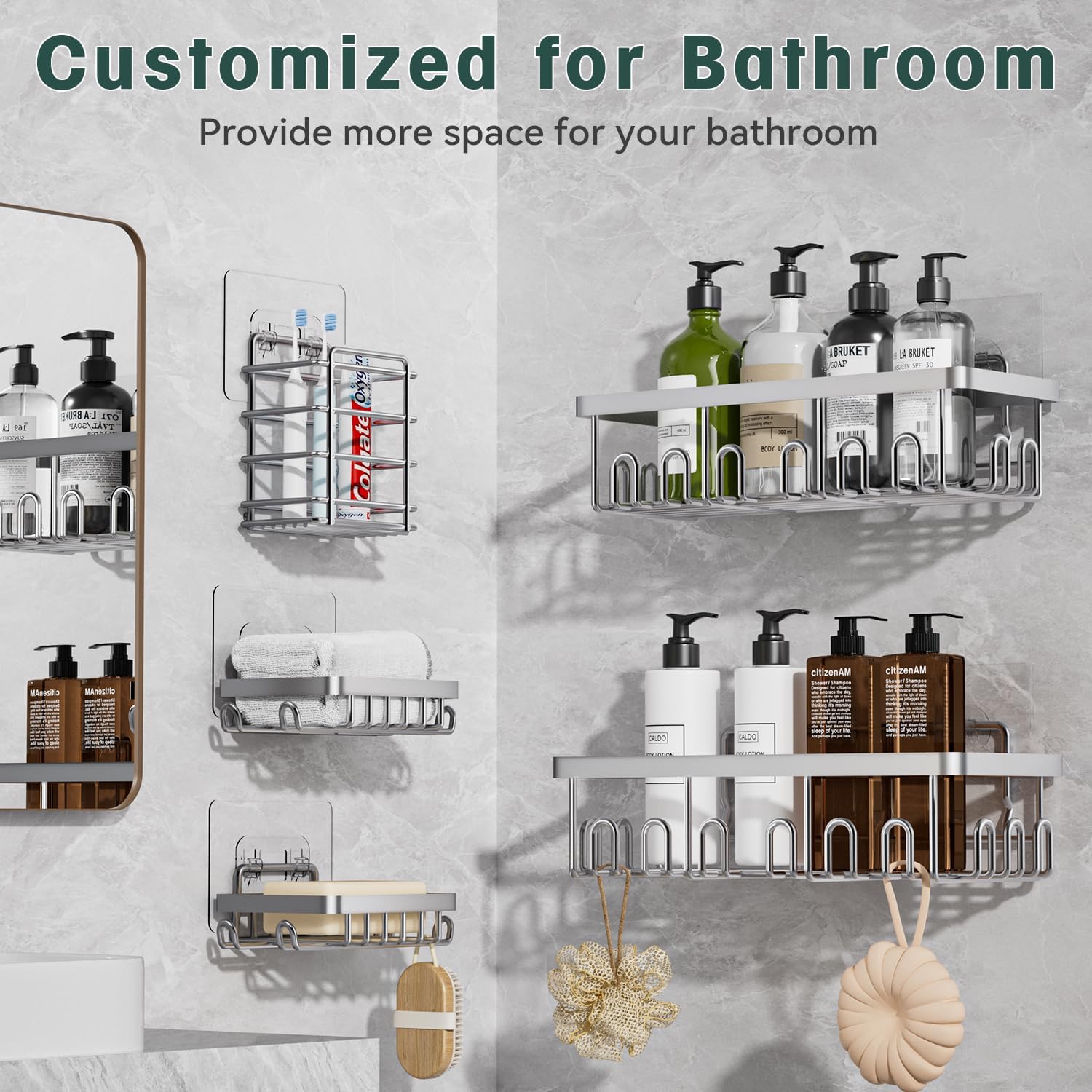 Shower Caddy Organizer Rack Shelf with Soap and Toothbrush Holder,Stainless Steel Organizer for Bathroom Organizers and Storage,No Drilling Wall Mounted Rack Bathroom Caddy Silver,5-Pack