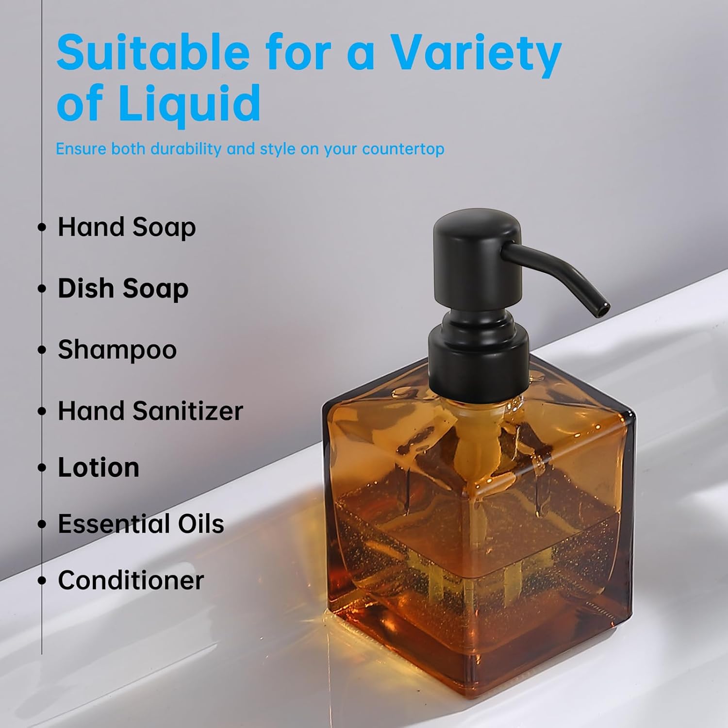 - Amber Glass Soap Dispenser with Black Pump: Refillable soap dispenser with elegant design, easy to pump
