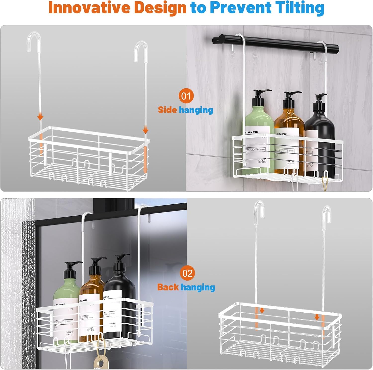 YUOROS Hanging Shower Caddy, Shower Caddies Bathroom Shower Rack Organizer Shampoo Bracket (White)