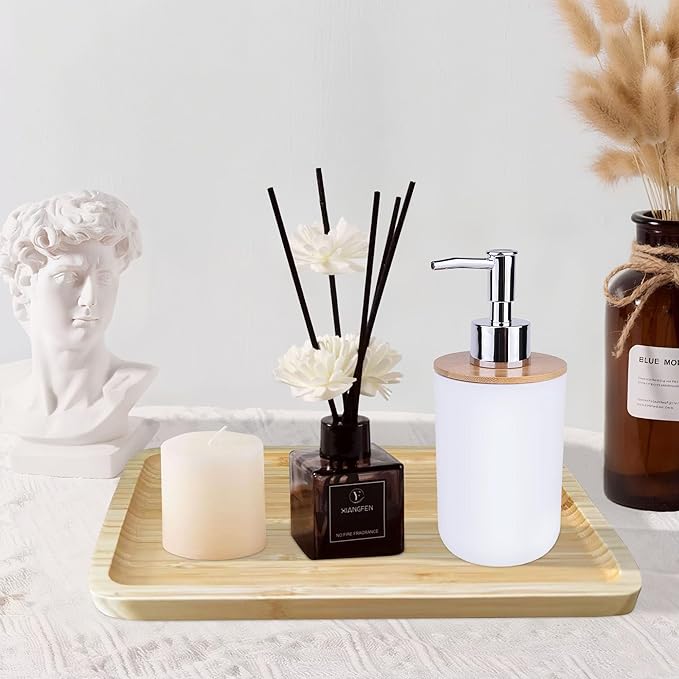 Aoheuo Bathroom Counter Tray, 10 inches Long, 7 inches Wide, 0.6 inches High, Bamboo Decorative Tray for Bathroom, Kitchen Sink and Vanity