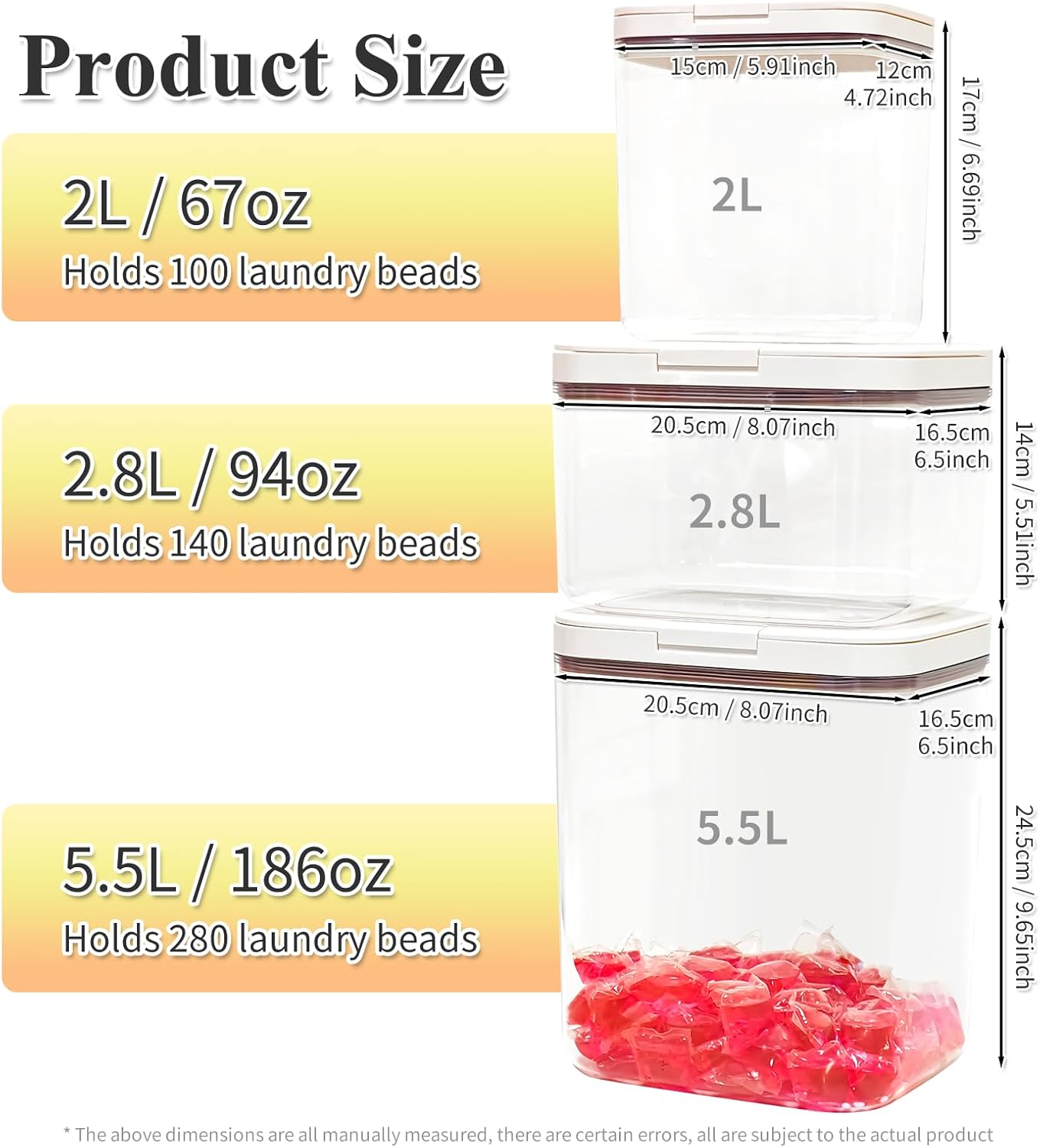 - Multi-Purpose Functionality: Our multi-purpose storage containers are not limited to laundry pods alone. Use them to store laundry powder, dryer sheets, balls, lints, pegs, or as a fabric softener dispenser and bathroom container with lids. Enhance your laundry room aesthetics effortlessly with these modern and space-saving storage solutions.