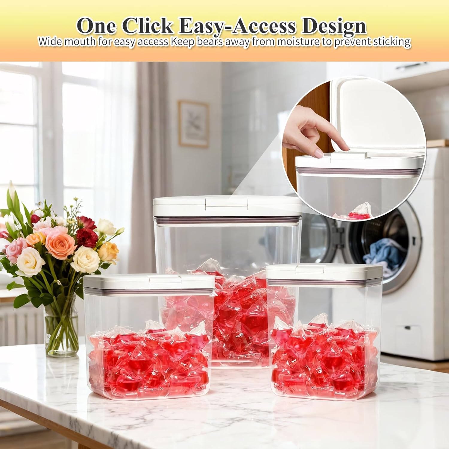 Gute Sealed Auto Pop-Up Laundry Pod Holder with Lid, 3-Piece Laundry & Dishwasher Pod Container Set for Laundry Room Organization (67oz, 94oz, 186oz Capacity)