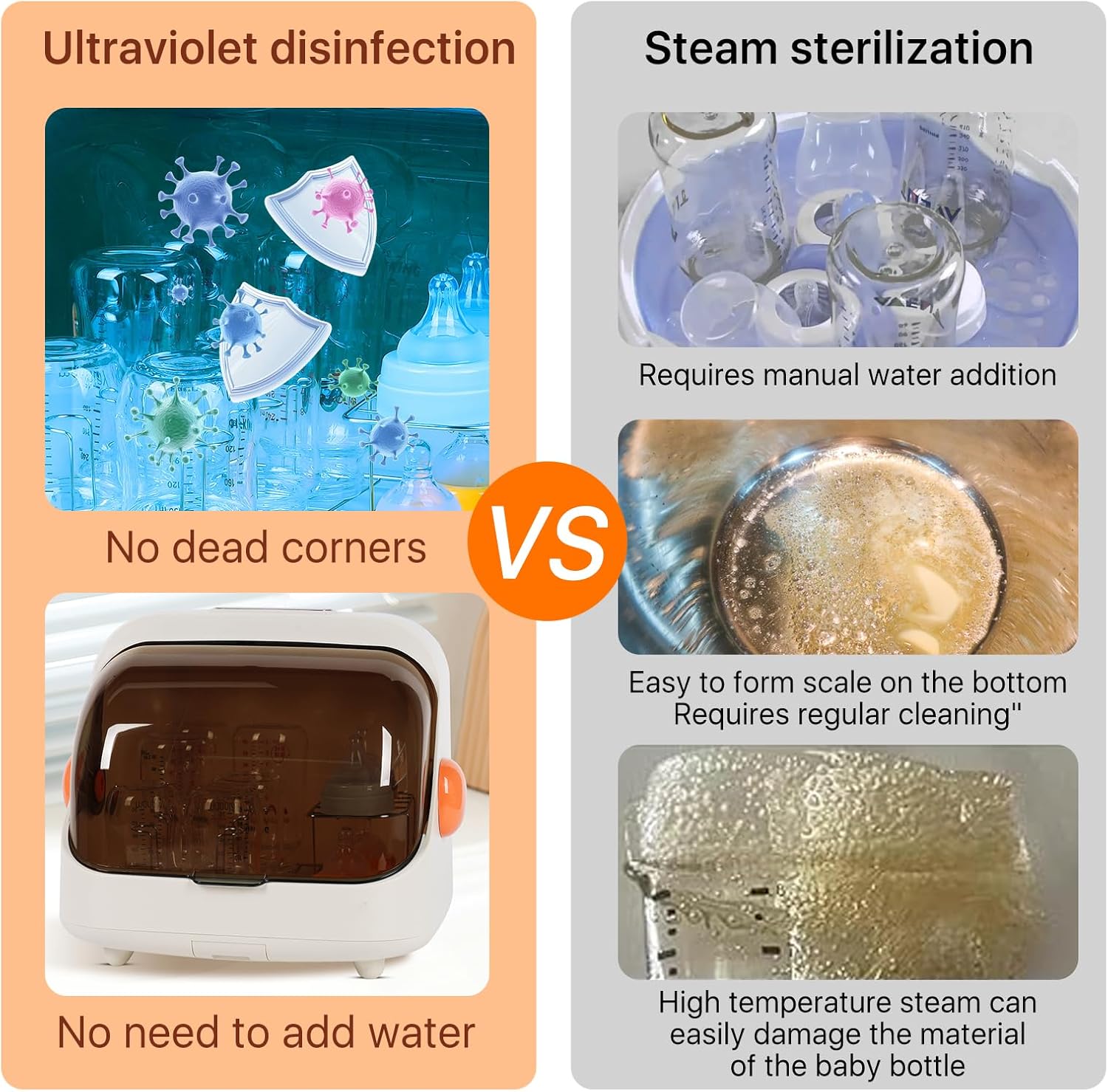 Transparent Baby Bottle Drying Rack with Double Lid and Removable Drain Tray Dust-Proof Baby Bottle Storage Box, Space Saving Baby Bottle Rack Dryer (Orange - Sterilizer)