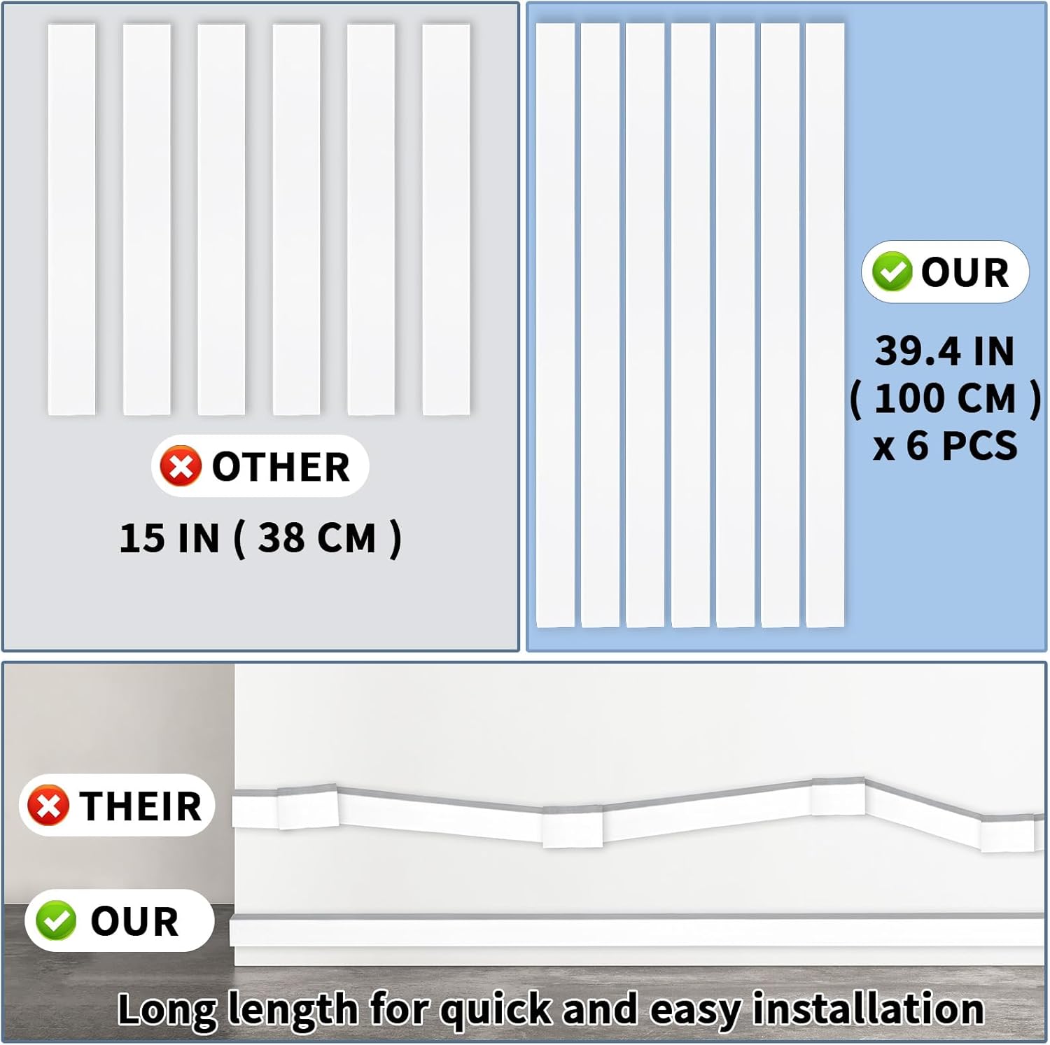 236in Cord Hider Kit, Cord Covers for Wires on Wall, Long, Large, Cord Hider for Wall Mount tv, Paintable Cable Raceway, tv Cable Hider Wall kit, Wire Covers for Cords,6X(L39.4in W0.95in H0.5in) White