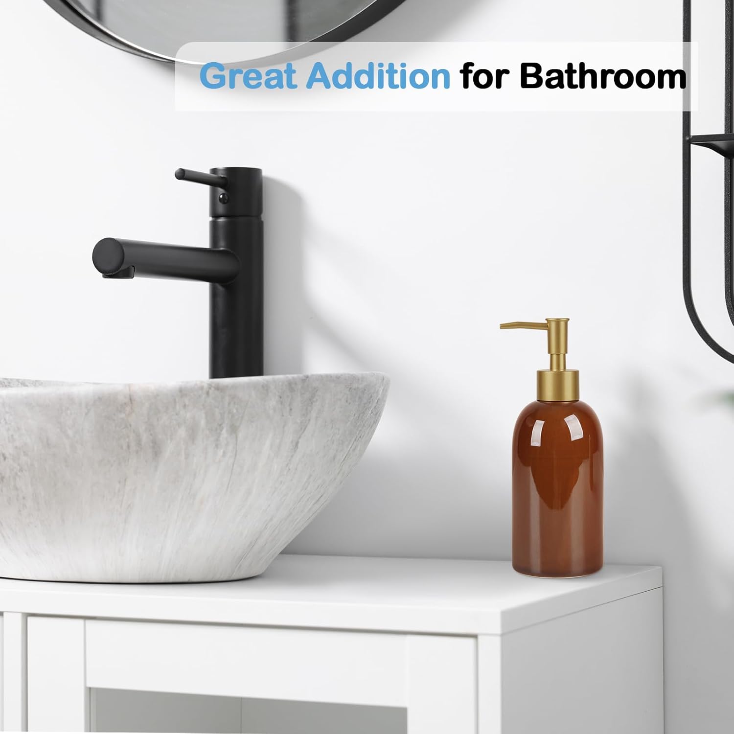 - Premium & Lightweight Ceramic: Crafted from upgraded ceramic material, this bathroom soap dispenser is lighter than traditional ceramics while maintaining durability, making it easy to move or refill.