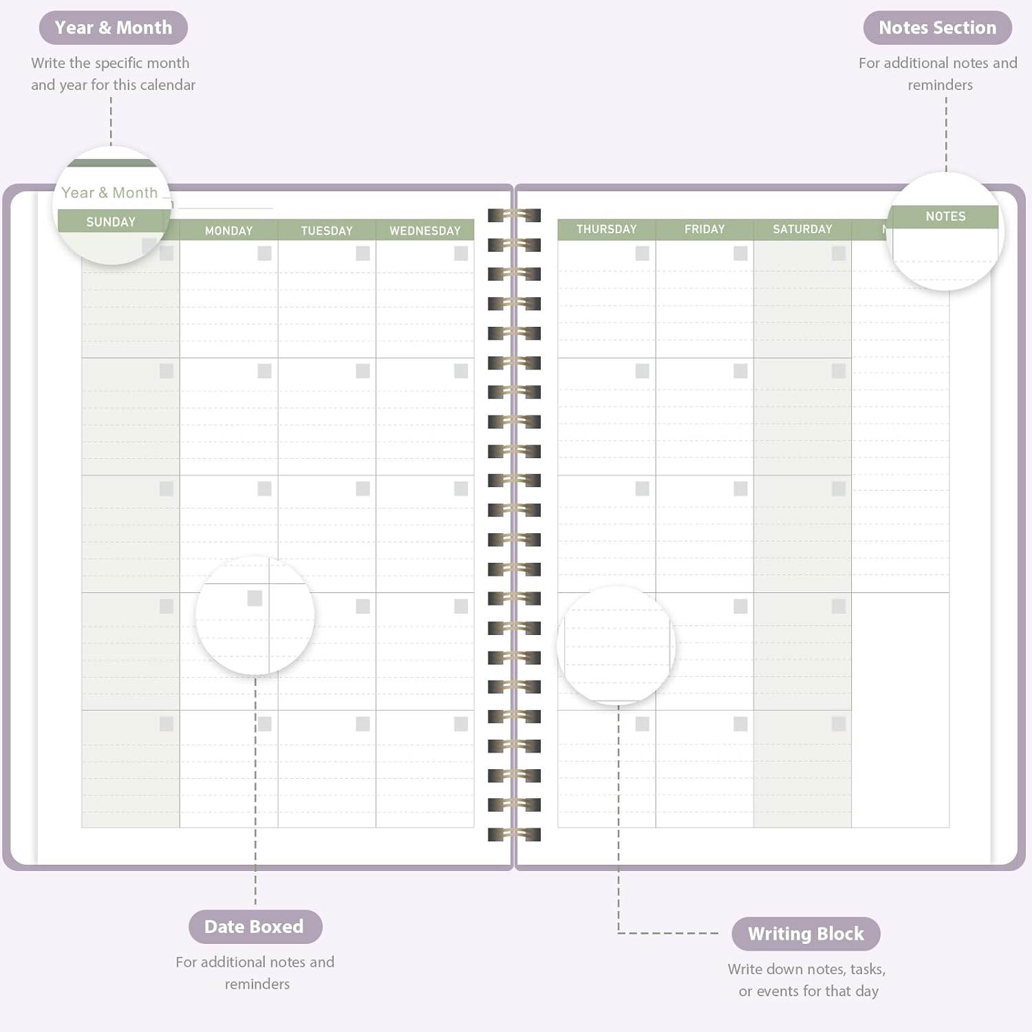 - [Medium-Sized Portability] - Measuring 6.1 inches x 8.5 inches, our calendar planner strikes the perfect balance between portability and functionality. Its sturdy construction and aesthetic design make it an ideal companion for all your planning endeavors.