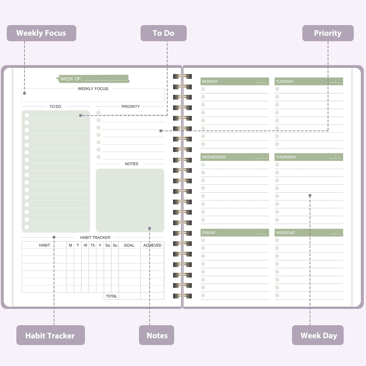 - [FLEXIBLE WEEKLY PLANNING] - Our undated weekly planner features 52 undated weeks, allowing you to start planning at any time without wasting pages. Whether it's 2025, 2026, or beyond, you can effortlessly continue your weekly planning journey without limitations.