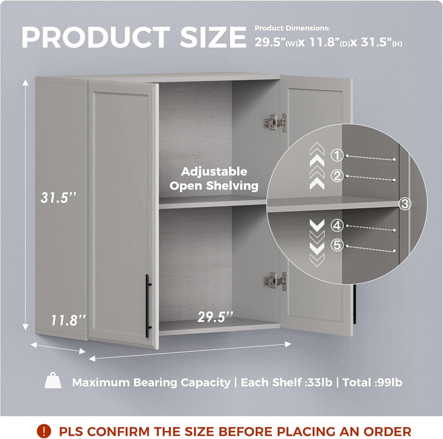 - AMPLE STORAGE: These large wall mount cabinets (31.5"H X 29.5"W x 11.8"D) provide spacious storage with doors, ideal for organizing laundry rooms as durable laundry room wall cabinets or serving as versatile upper kitchen cabinet solutions. Perfect for garage organization, bathroom storage, or pantry needs